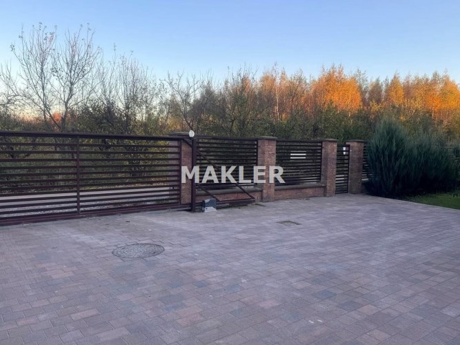 Działka jest ogrodzona solidnym ogrodzeniem betonowym imitującym drewno, które zapewnia prywatność oraz estetyczny wygląd posesji.