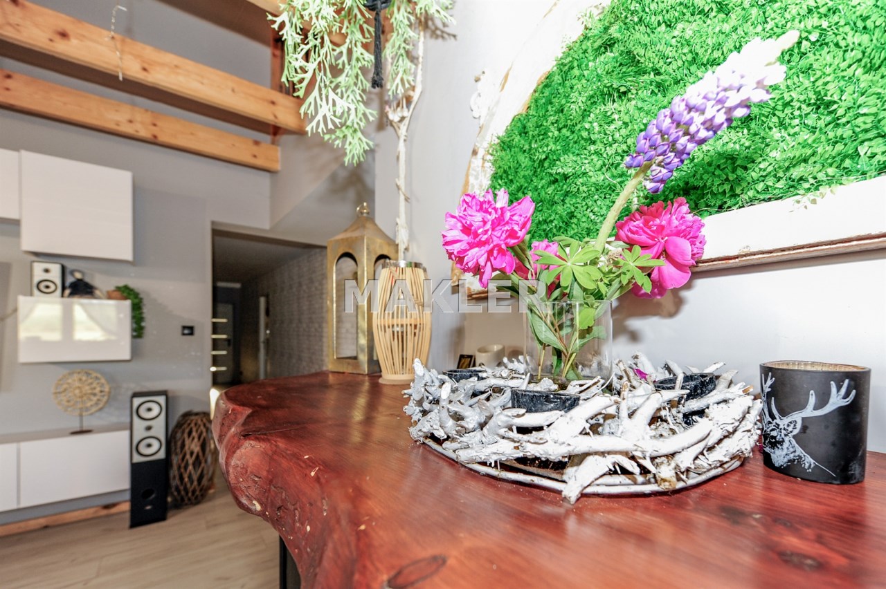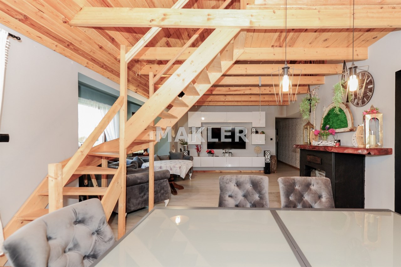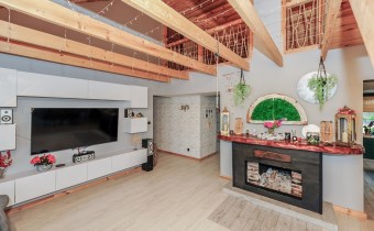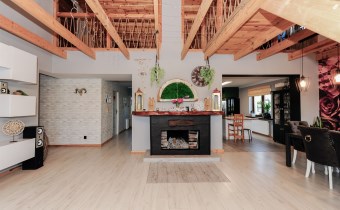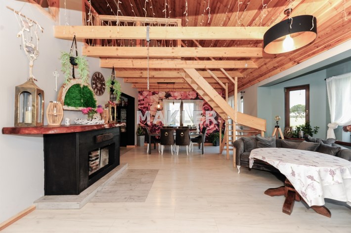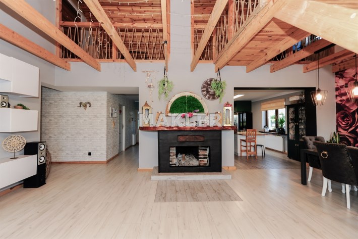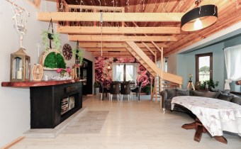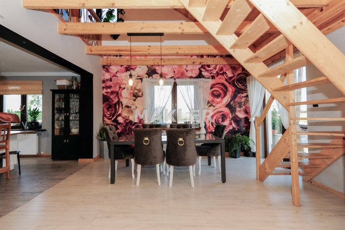 Cały dom tworzy niebanalną przestrzeń wyposażoną w pięknie dobrane do wnętrza meble. To doskonała nieruchomość dla klientów, którzy szukają czegoś wyjątkowego z dala od zgiełku dużego miasta.