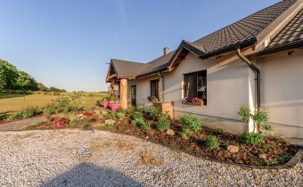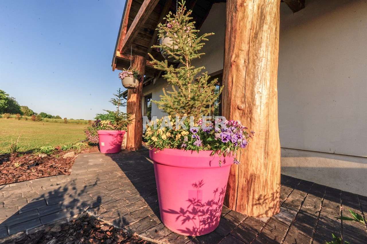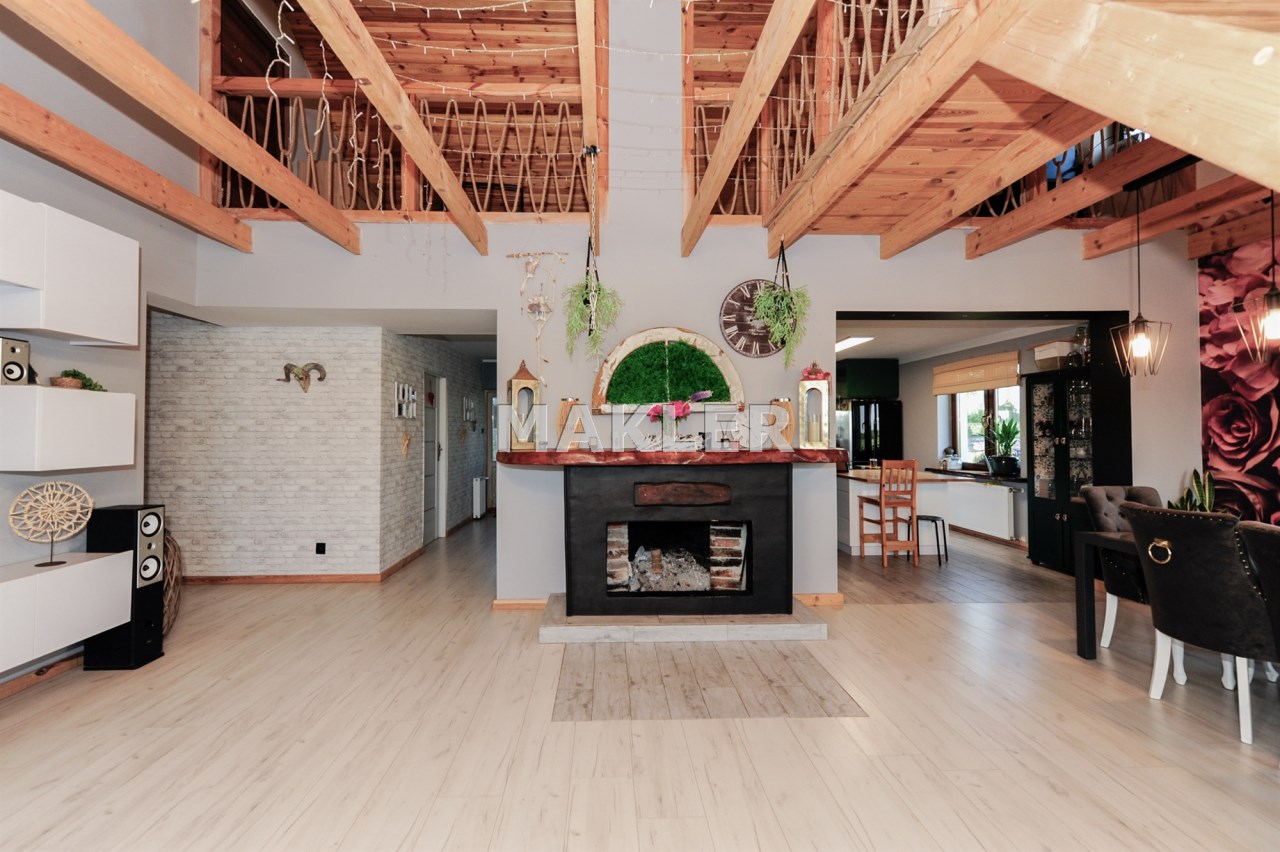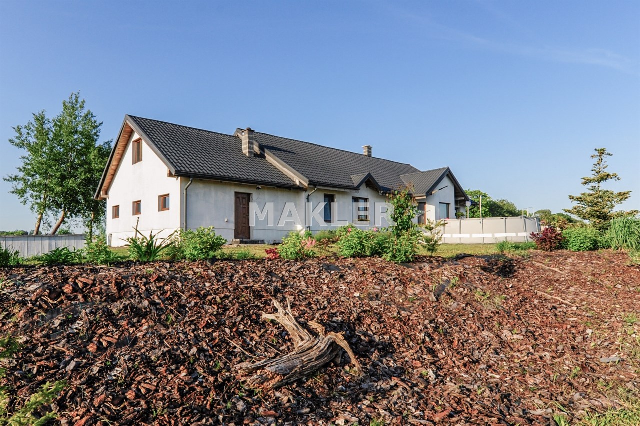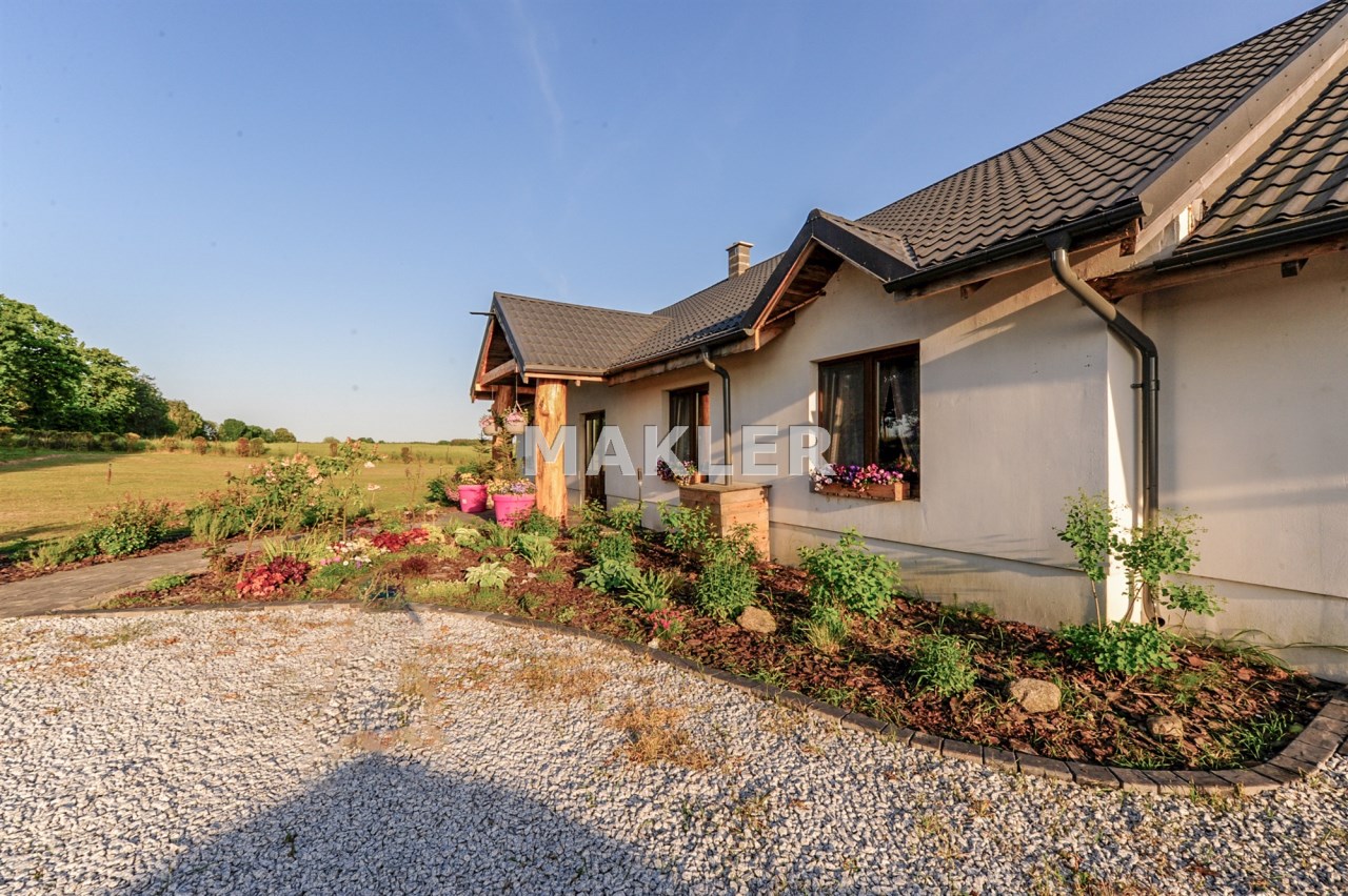 Wolnostojący Dom o powierzchni użytkowej całkowitej 218m² został wybudowany na dużej działce o powierzchni ponad 5000 m².