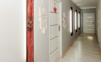 Wnętrze domu zaprojektowane w sposób funkcjonalny o układzie pomieszczeń: