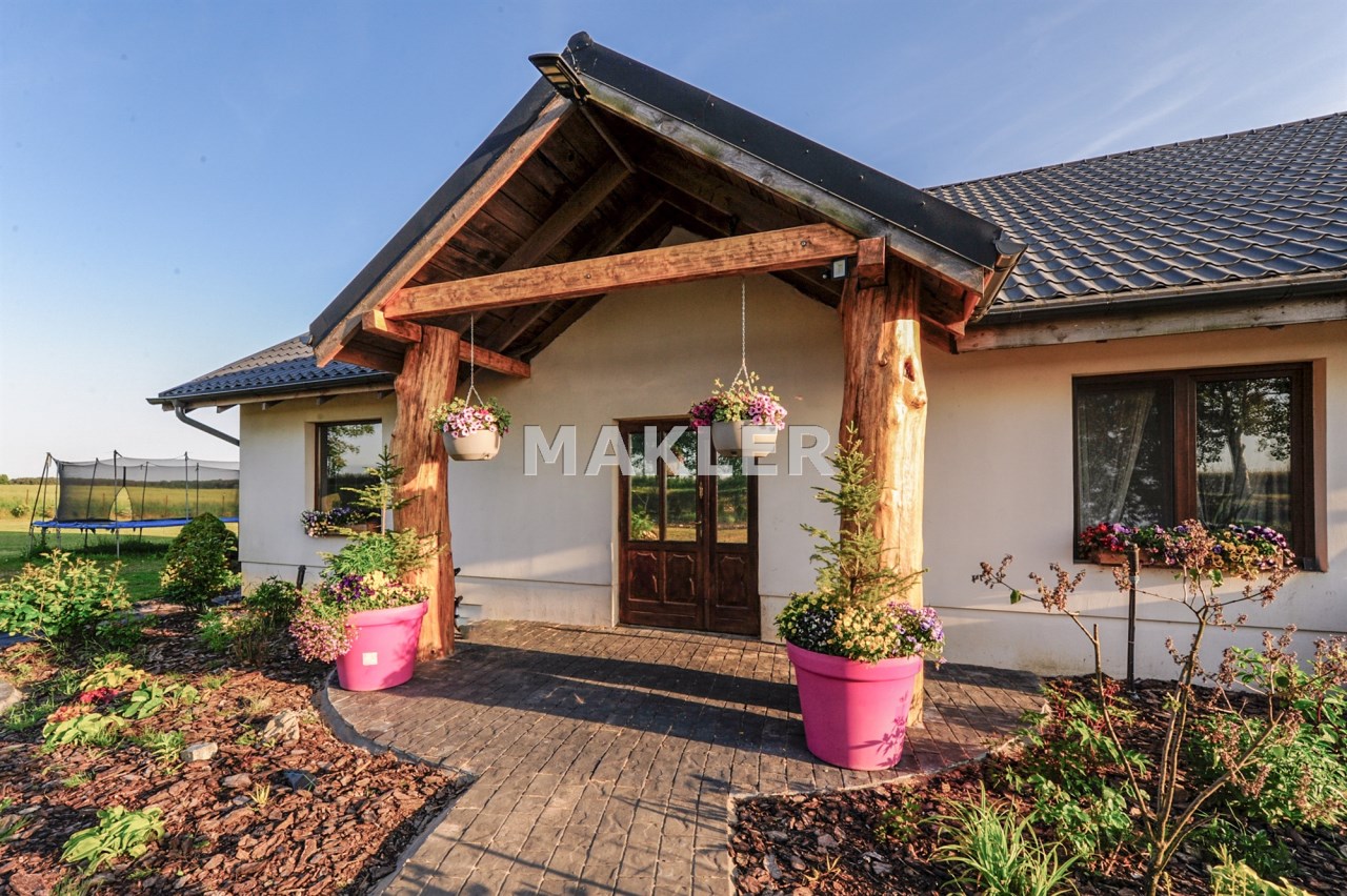 Wolnostojący Dom o powierzchni użytkowej całkowitej 218m² został wybudowany na dużej działce o powierzchni ponad 5000 m².