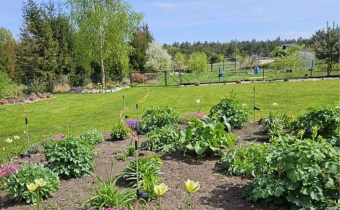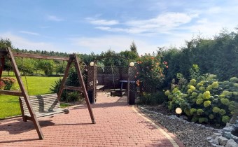 Działka zagospodarowana, ogród z miejscem na ognisko, plac zabaw dla dzieci.