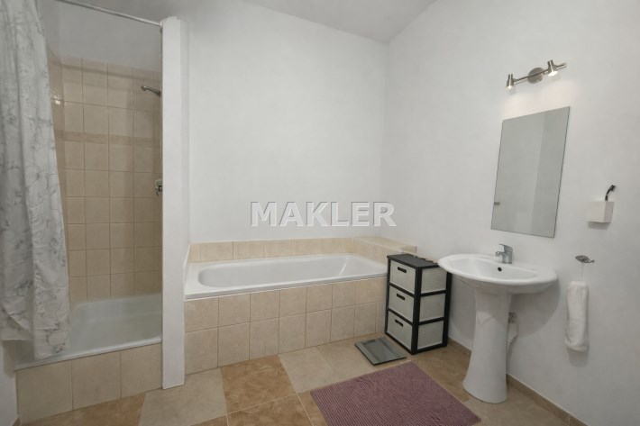 Dodatkowym atutem tej części nieruchomości jest duży taras o powierzchni 27 m², który stanowi idealne miejsce do wypoczynku. Obecnie lokal jest wynajmowany, co może stanowić gotowe źródło dochodu od pierwszego dnia po zakupie.