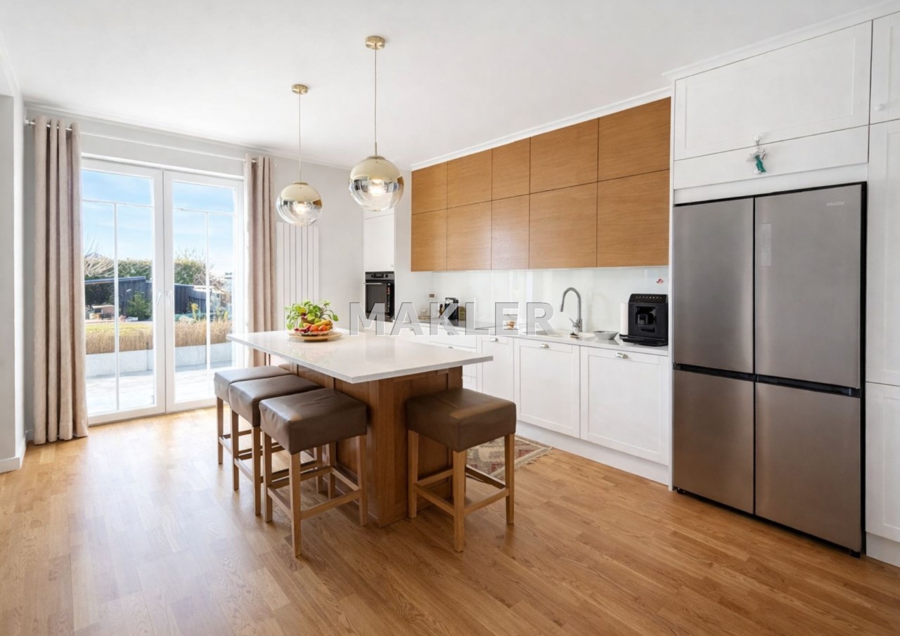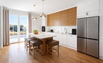 Kuchnia otwarta na jadalnię, w pełni wyposażona (zmywarka, piekarnik, płyta indukcyjna).