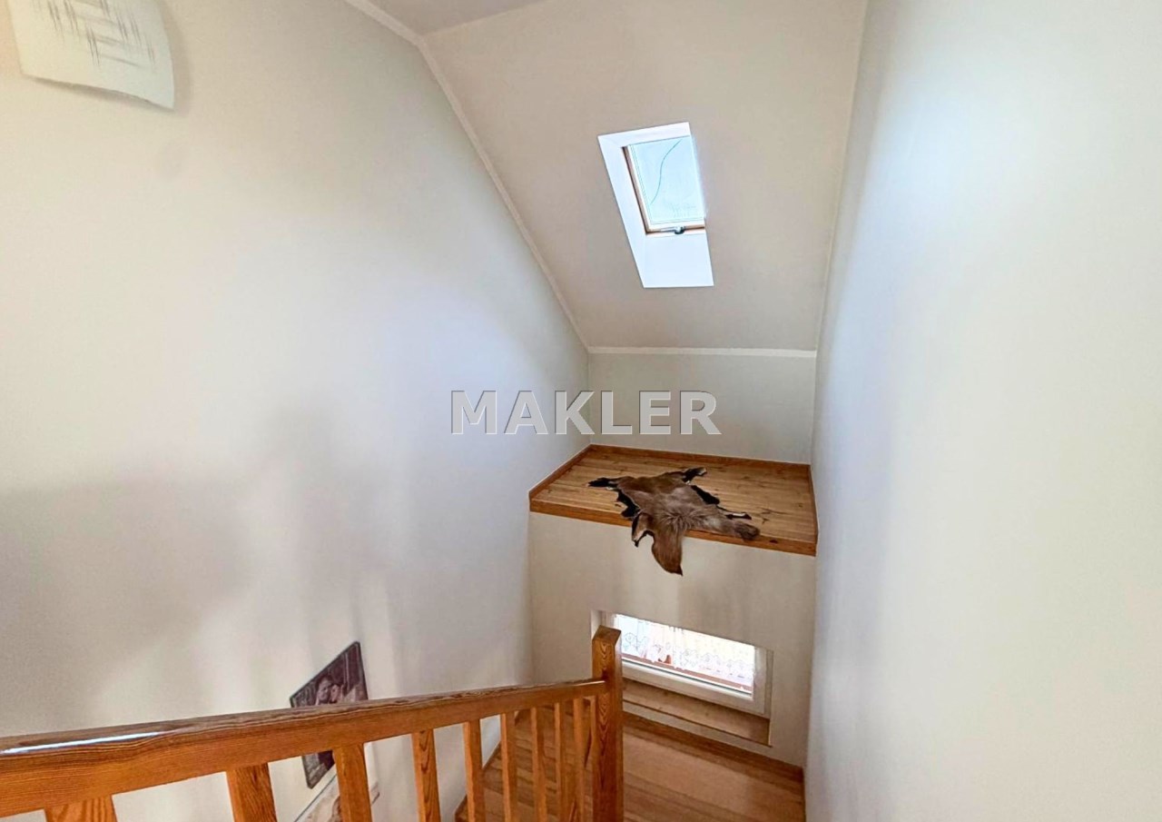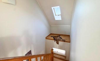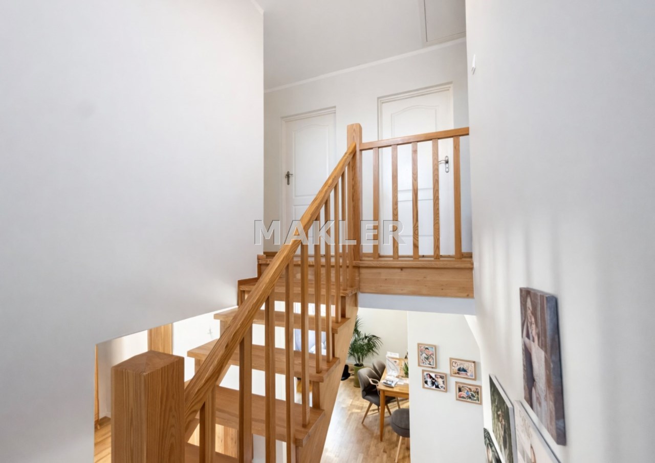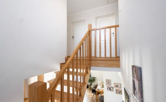 Na piętro prowadzą estetyczne, drewniane schody sosnowe.