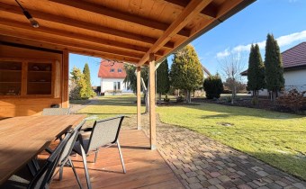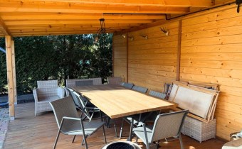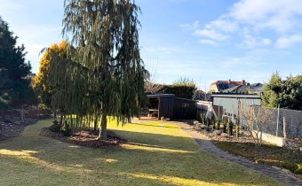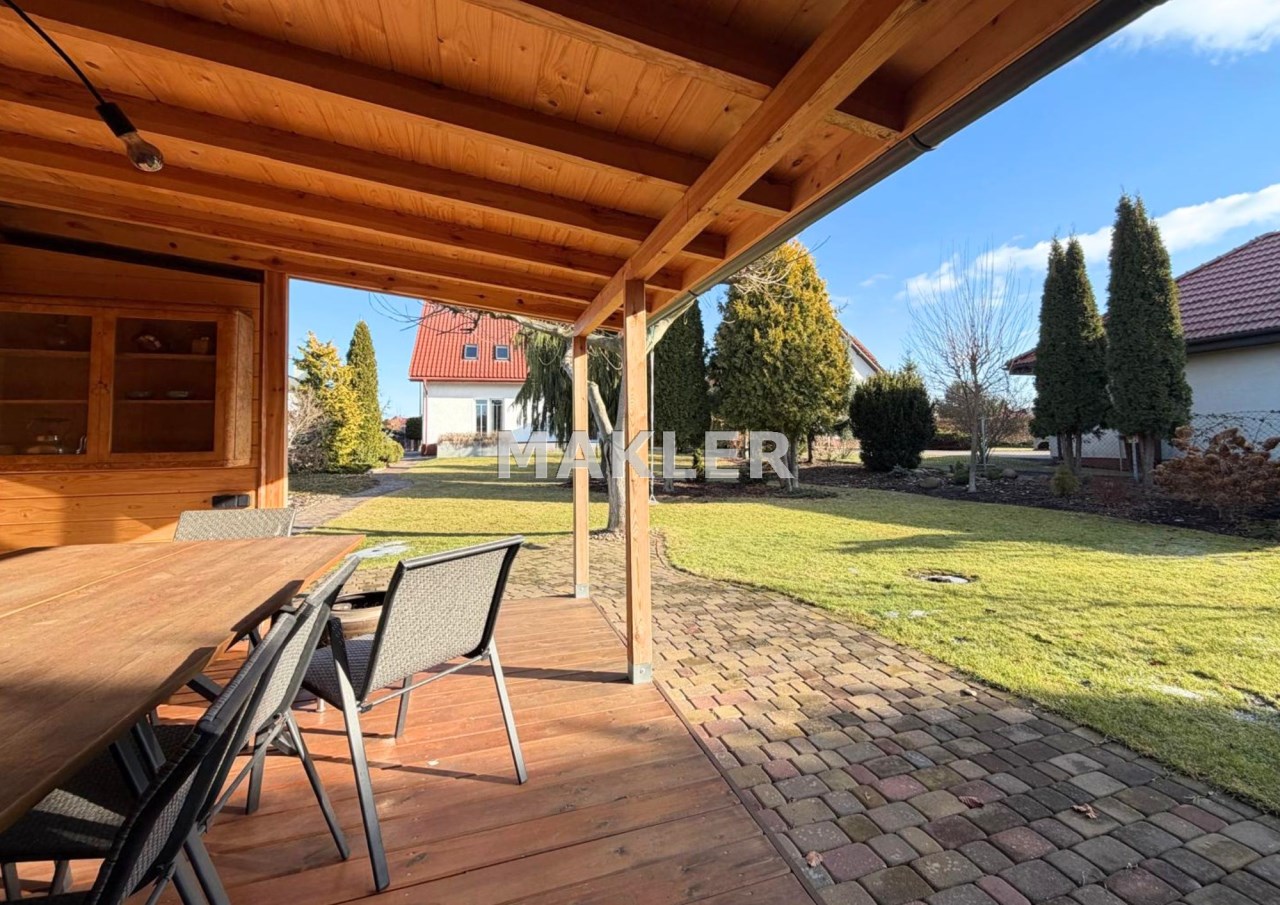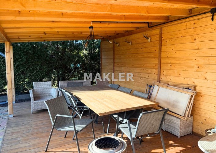 Na terenie posesji znajduje się drewniany domek gospodarczy (ok. 15 m²), kryty blachą trapezową, z zadaszonym tarasem – idealny do grillowania i spotkań rodzinnych.