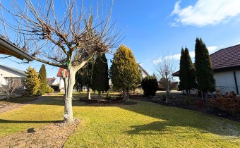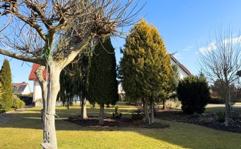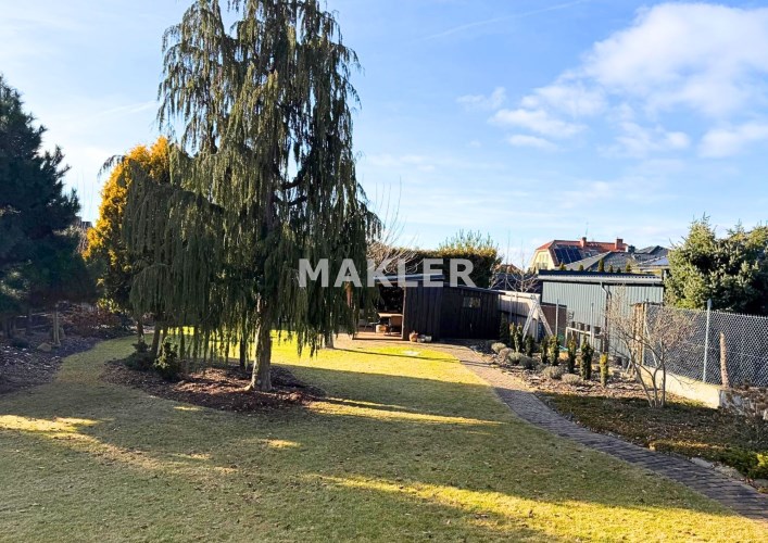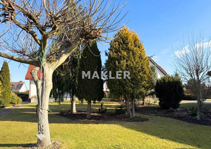 Działka o powierzchni 989 m² została starannie zagospodarowana, z licznymi nasadzeniami oraz systemem nawodnienia.