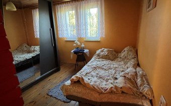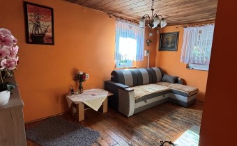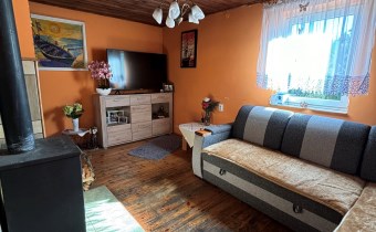 Działka o powierzchni 338m na której usytuowany jest dom o powierzchni 30m.Dół domu to kuchnia, pomieszczenie gospodarcze, natomiast góra to salon, sypialnia i łazienka.Dom ogrzewany kominkiem typu koza góra i dół.
