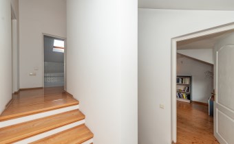 Dach budynku pokryto ceramicznymi dachówkami, i w pełni odeskowano. Strop ocieplono warstwą wełny mineralnej o grubości 20 cm i wykończono płytami gipsowymi, co zapewnia doskonałą izolację termiczną.