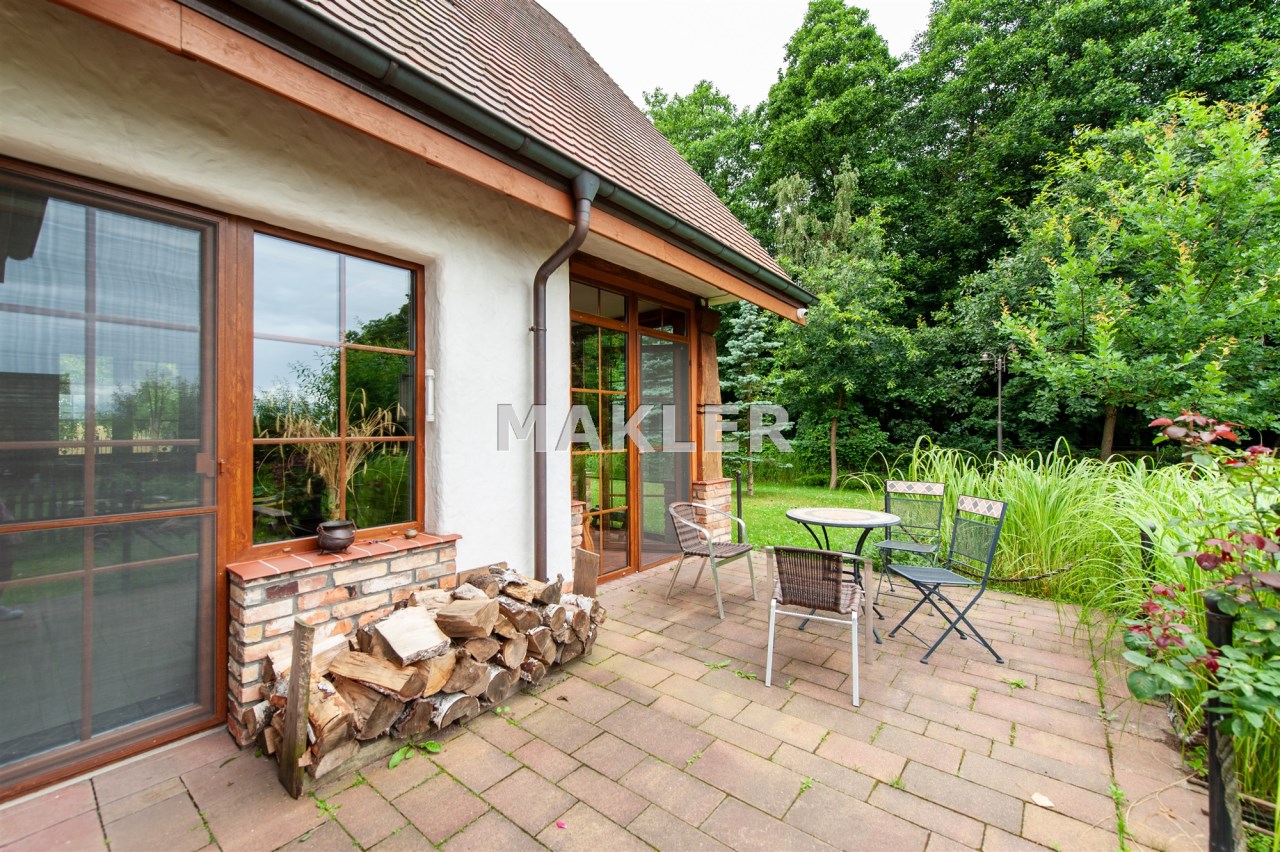 Ten urokliwy zakątek powstał w 2021 jako efekt marzeń, wizji i wielkoletniego doświadczenia budowlanego oraz artystycznego obecnego właściciela. Najwyższej jakości materiały i nowoczesne rozwiązania zostały wykorzystane do stworzenia nieruchomości nawiązującej stylem do tradycyjnych Polskich dworków umieszczanych na siedliskach. Całości dopełnia zarybiony staw, ogród zimowy, kuźnia, liczne nasadzenia oraz stajnia. W tej ostatniej jeszcze do niedawna gościły konie regularnie ujeżdżane podczas wypraw do otaczających tę okolicę lasów. Dodatkowe funkcje użytkowe zapewnia m.in. wykopana na działce studnia oraz 3 stanowiskowy zewnętrzny garaż. Swobodne przemieszczanie się po siedlisku zapewnia ok 300m zrównanego bruku wykonanego z ciętego kamienia.
