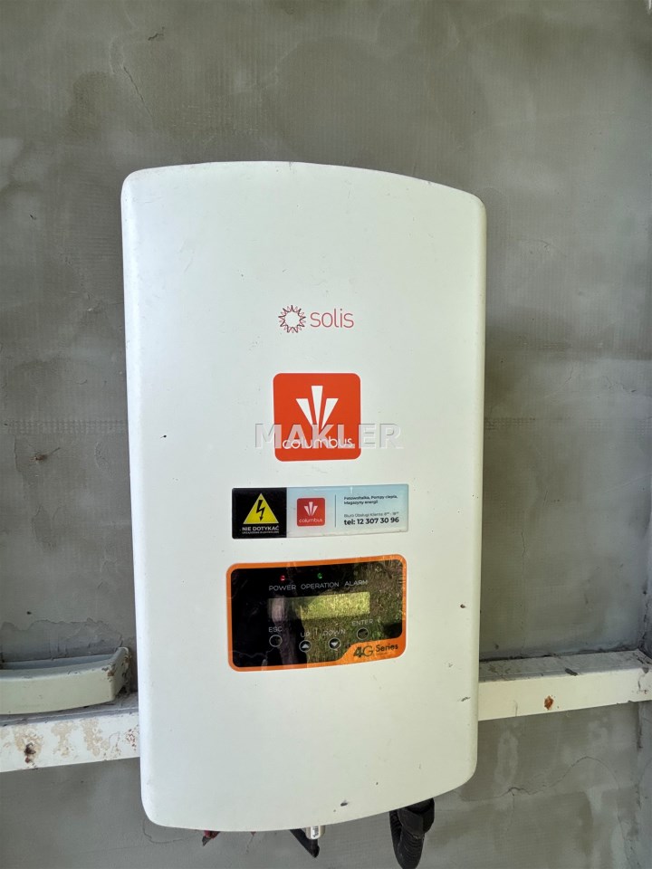 Dom ogrzewany jest nowoczesną pompą ciepła 8 KW z czego 60% to ogrzewanie podłogówka i 40 % kaloryfery, co zapewnia niskie koszty eksploatacji i wysoki komfort cieplny przez cały rok. Dodatkowo wyposażony w instalację fotowoltaiczną 6KW, co przekładka się na bardzo niskie koszty utrzymania.