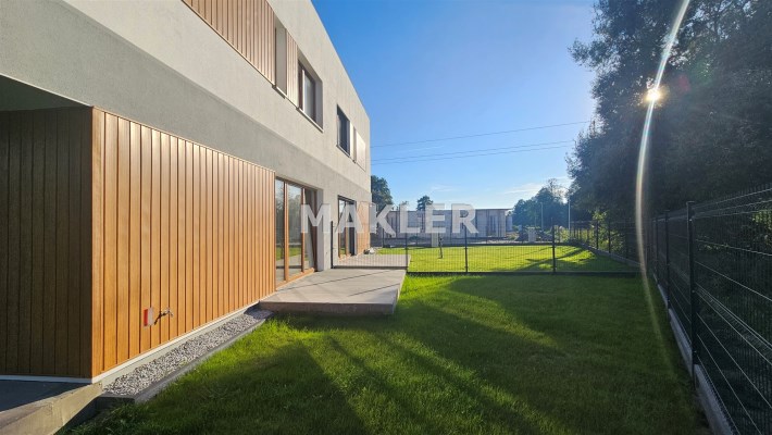Dom położony jest w otoczeniu zieleni, co zapewnia relaksującą atmosferę i doskonałe warunki do odpoczynku. To doskonała propozycja dla rodzin, które szukają nowoczesnego i funkcjonalnego domu w spokojnej, a jednocześnie dobrze skomunikowanej okolicy.