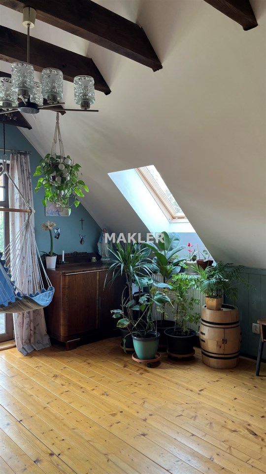 Działka o powierzchni 1000 m² jest w pełni zagospodarowana i zadbana – liczne nasadzenia oraz dużo zieleni tworzą wyjątkowy klimat.
