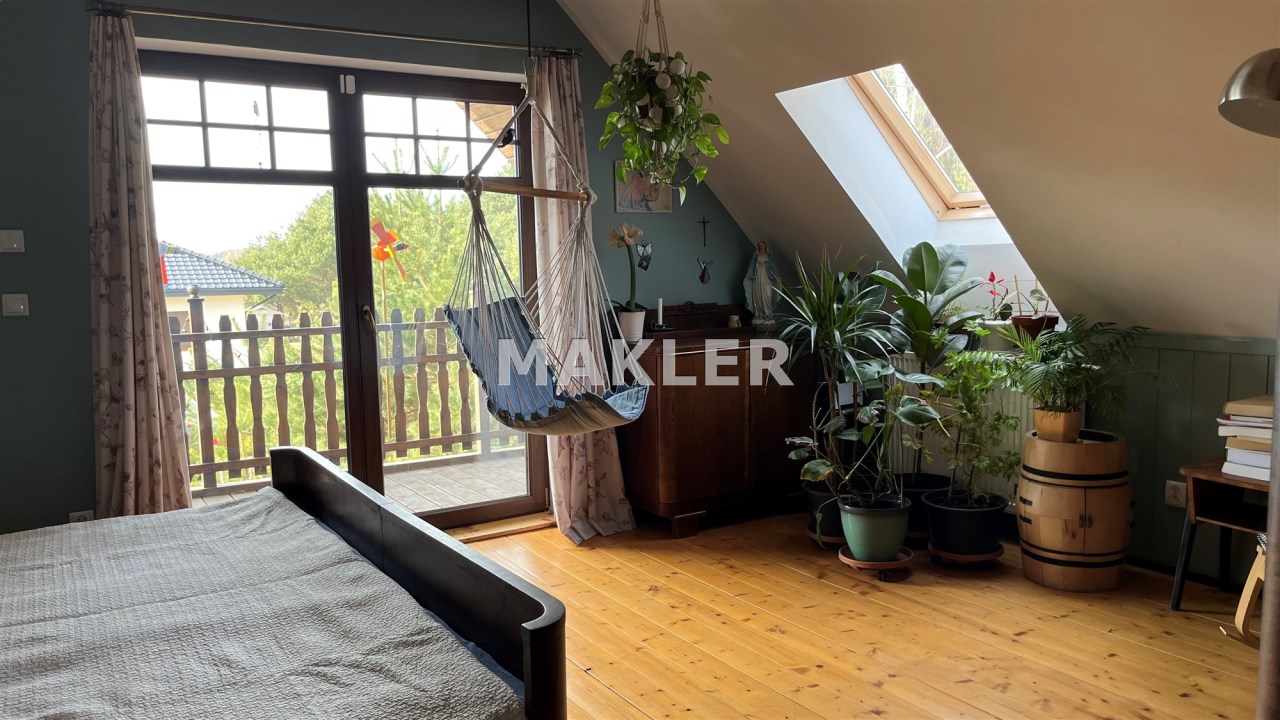 Działka o powierzchni 1000 m² jest w pełni zagospodarowana i zadbana – liczne nasadzenia oraz dużo zieleni tworzą wyjątkowy klimat.