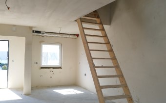 • antresola - wykonana konstrukcja podłogi z płyty OSB, dach na poddaszu pokryty płytą GK, bez
