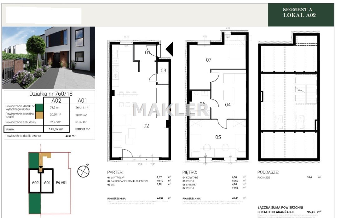 Przedstawiamy 4 pokojowy dom w zabudowie szeregowej, o powierzchni 98,14m2 na działce o powierzchni 159,45m2