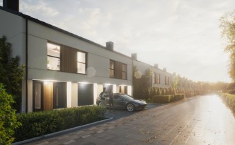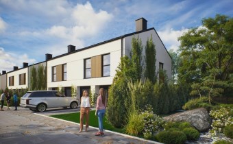 Domy na osiedlu łączą nowoczesną architekturę z ponadczasową elegancją. Jasne elewacje, duże przeszklenia i prosta, harmonijna forma nadają im lekkości i otwierają wnętrza na naturalne światło. To funkcjonalny, a zarazem estetyczny design, który doskonale wpisuje się w zielone otoczenie osiedla.