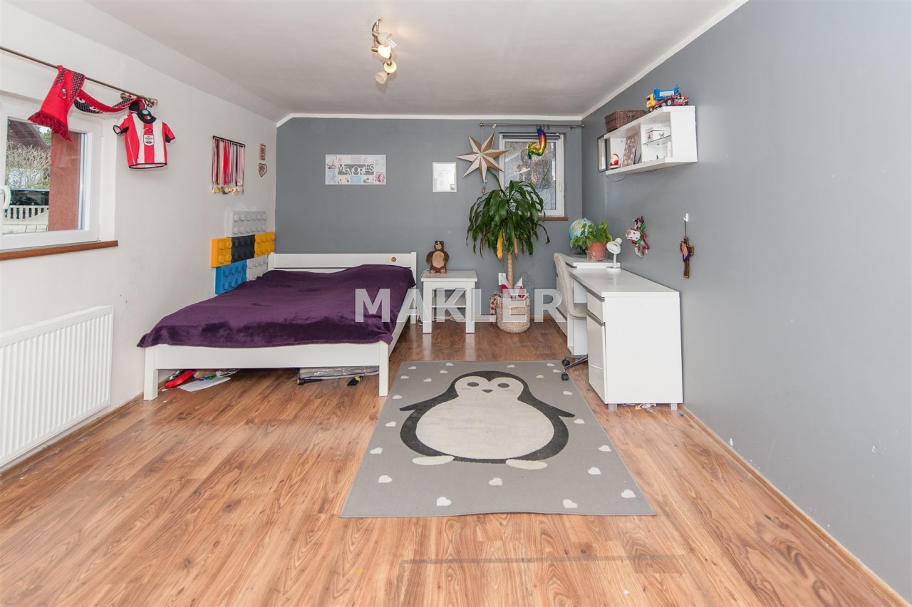 Atutem nieruchomości jest opcja zrobienia dwóch odrębnych mieszkań na każdym z pięter. Dom idealnie nadaje się dla dużej rodziny lub dla osób lubiących przestrzeń.