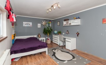 -trzy pokoje o metrażach (28,70 mkw.; 22.90 mkw.; 15,20 mkw.), a także pokój z garderobą (10 mkw), oraz łazienka (5,10mkw.). Piętro domu wyposażone jest w klimatyzację, która idealnie sprawdza się w upalne dni.