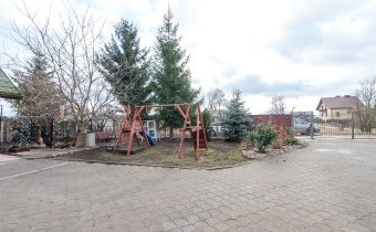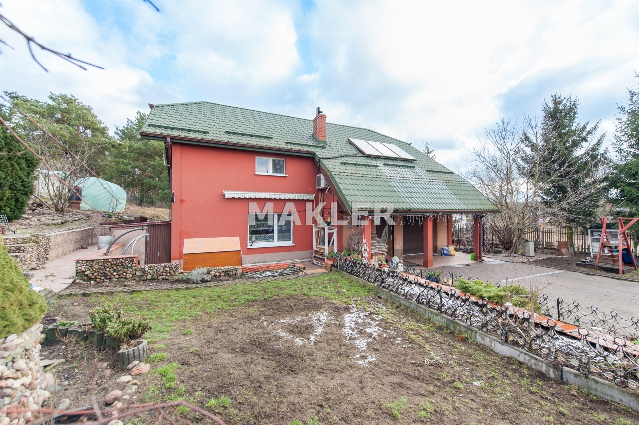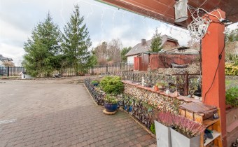 Działka jest zagospodarowana, znajdują się na niej wieloletnie nasadzenia. Teren jest ogrodzony. Do garażu , który znajduje się w budynku, prowadzi droga dojazdowa, wyłożona kostką brukową. Dodatkowo na działce znajduje się garaż blaszany na drugi samochód i wiata również z możliwością parkowania auta.