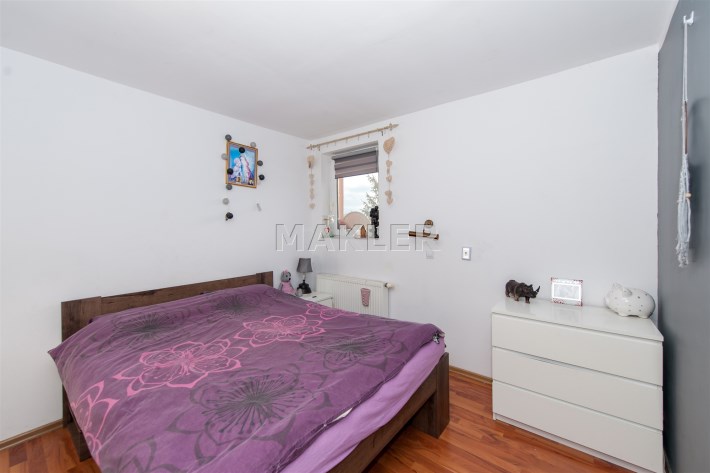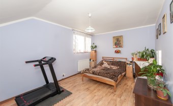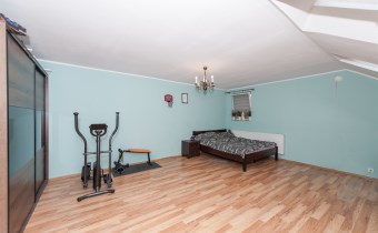 -trzy pokoje o metrażach (28,70 mkw.; 22.90 mkw.; 15,20 mkw.), a także pokój z garderobą (10 mkw), oraz łazienka (5,10mkw.). Piętro domu wyposażone jest w klimatyzację, która idealnie sprawdza się w upalne dni.