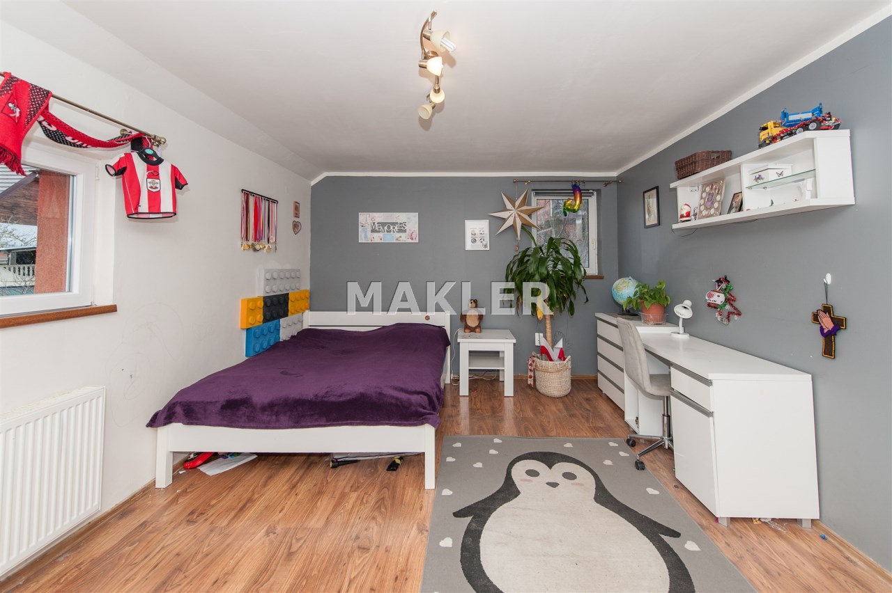 Atutem nieruchomości jest opcja zrobienia dwóch odrębnych mieszkań na każdym z pięter. Dom idealnie nadaje się dla dużej rodziny lub dla osób lubiących przestrzeń.
