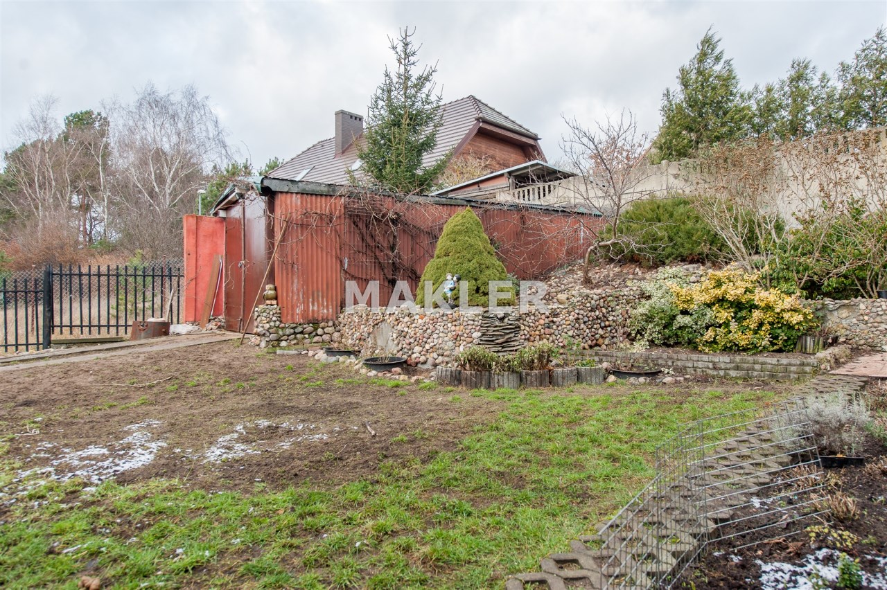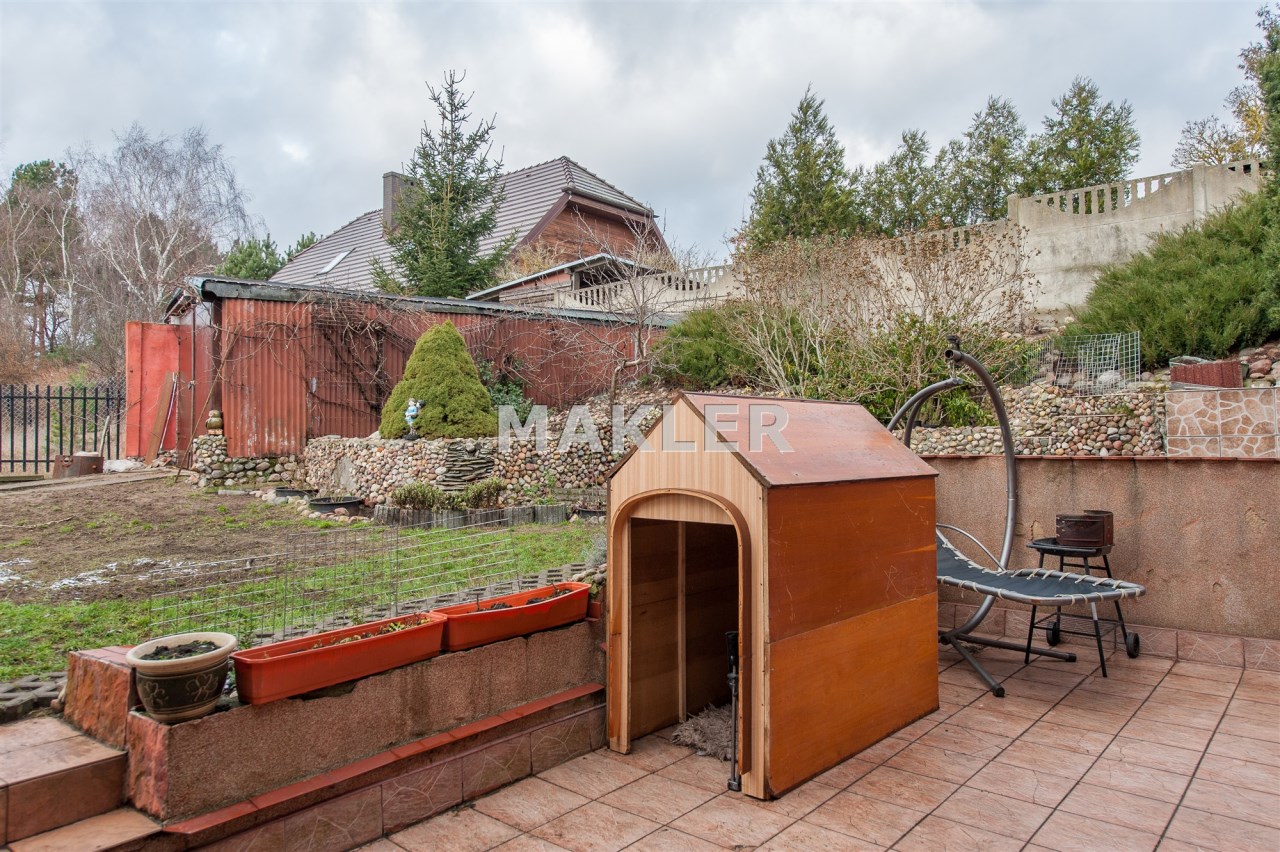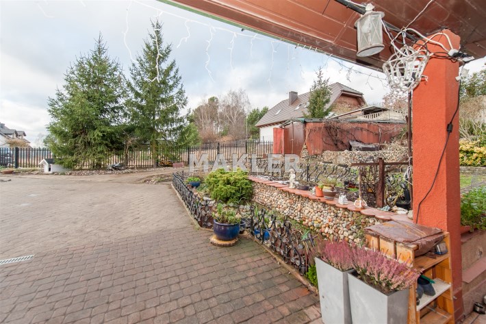 Działka jest zagospodarowana, znajdują się na niej wieloletnie nasadzenia. Teren jest ogrodzony. Do garażu , który znajduje się w budynku, prowadzi droga dojazdowa, wyłożona kostką brukową. Dodatkowo na działce znajduje się garaż blaszany na drugi samochód i wiata również z możliwością parkowania auta.