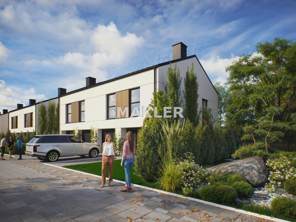 Domy na osiedlu łączą nowoczesną architekturę z ponadczasową elegancją. Jasne elewacje, duże przeszklenia i prosta, harmonijna forma nadają im lekkości i otwierają wnętrza na naturalne światło. To funkcjonalny, a zarazem estetyczny design, który doskonale wpisuje się w zielone otoczenie osiedla.
