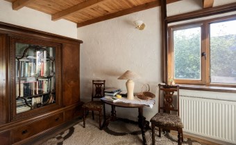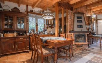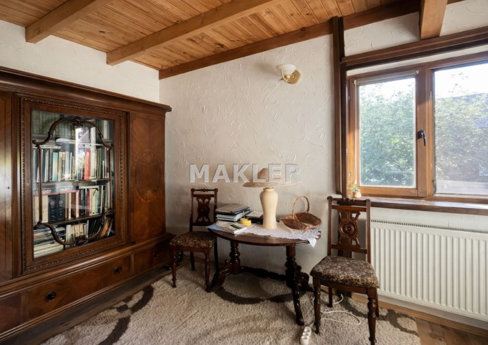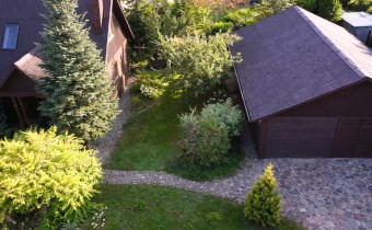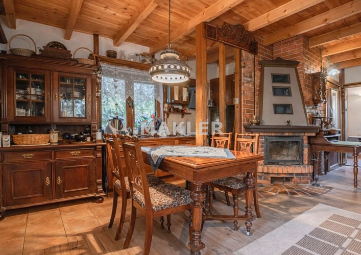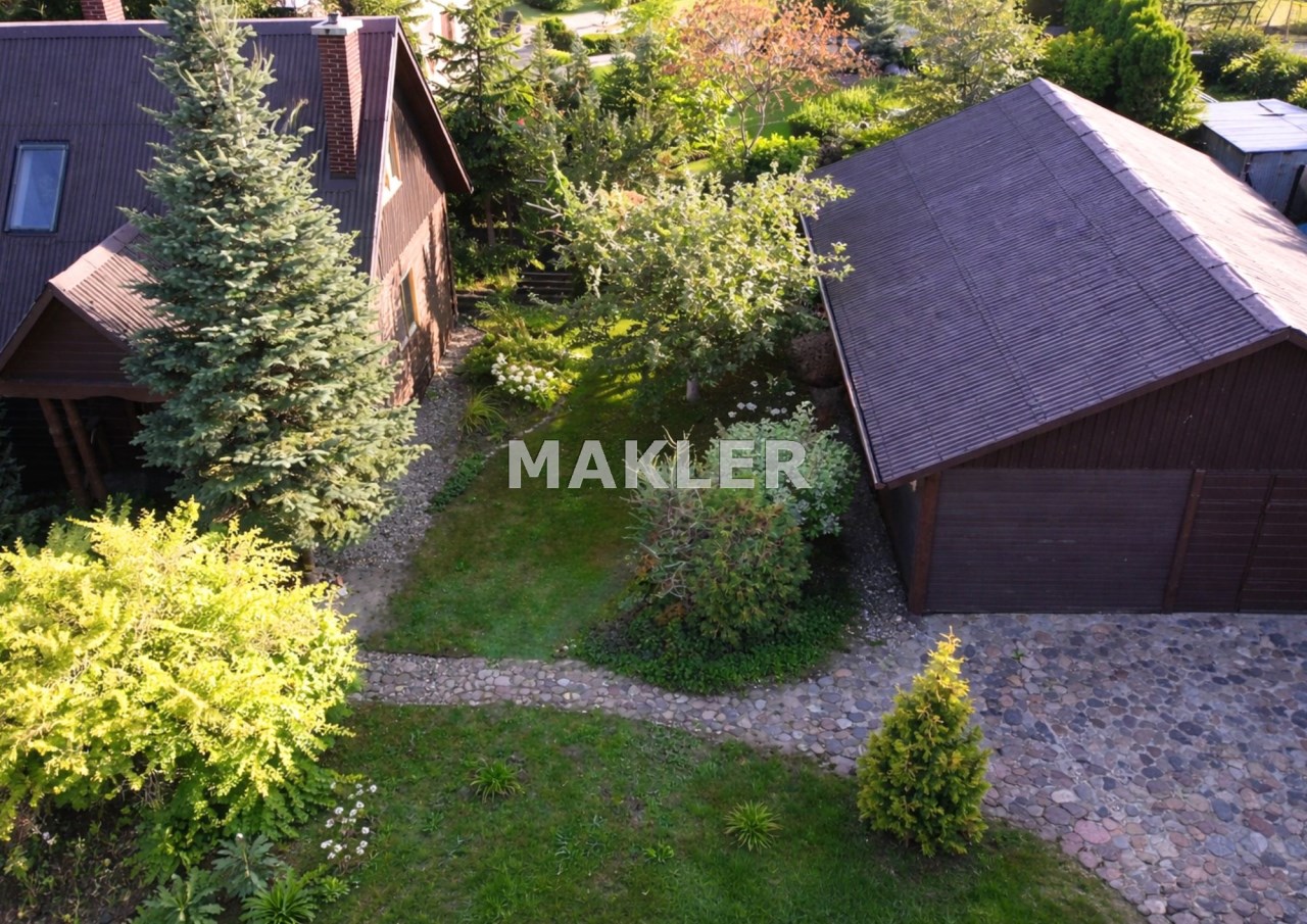 Na działce znajduje się również wolnostojący budynek garażowo-gospodarczy o powierzchni 39 m² z wiatą, ogrzewany z tego samego źródła co dom. Teren jest w pełni ogrodzony drewnianym ogrodzeniem i starannie zagospodarowany – liczne nasadzenia, drzewa, krzewy oraz kamienne ścieżki tworzą niepowtarzalny, klimatyczny charakter posesji.