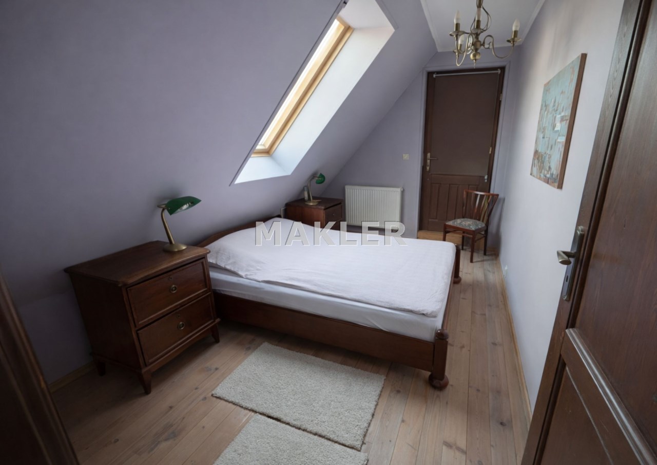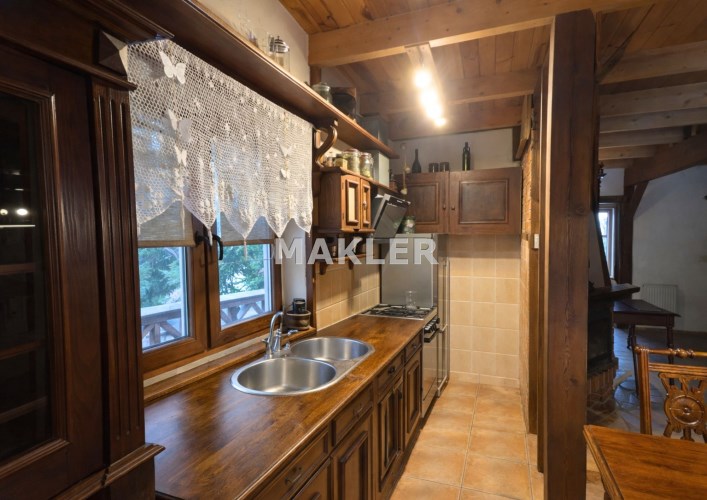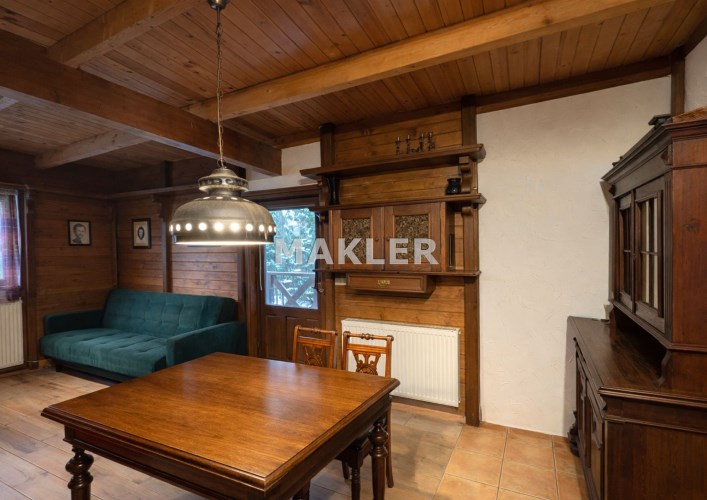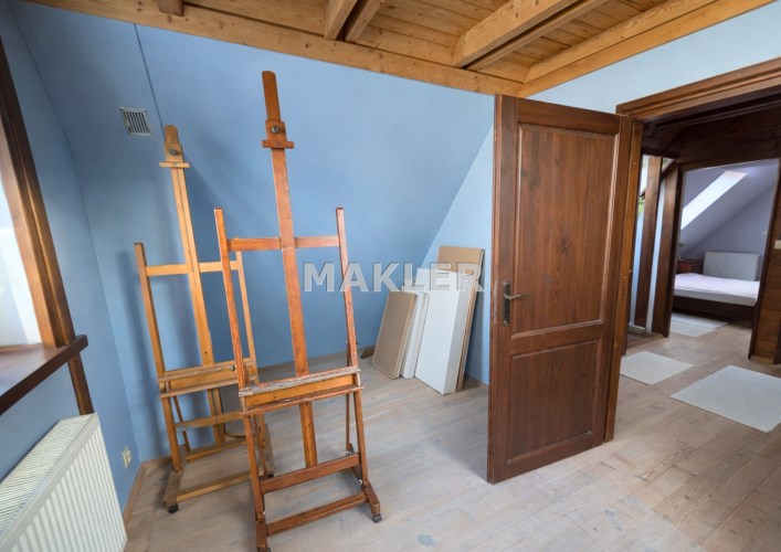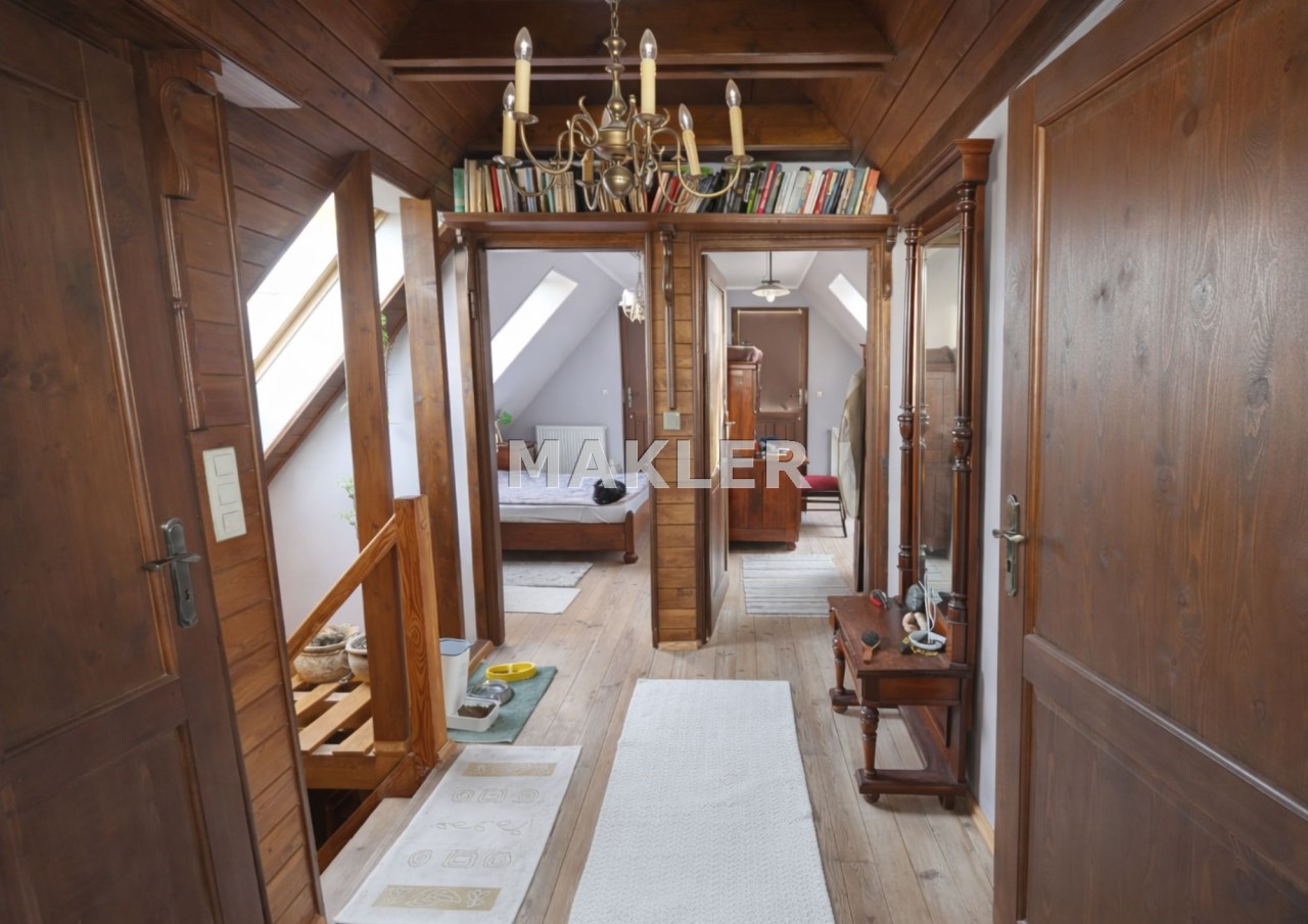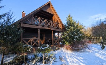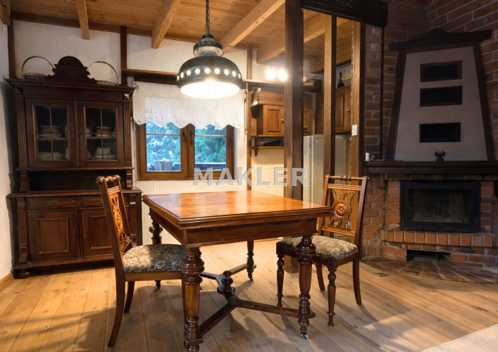 Na działce znajduje się również wolnostojący budynek garażowo-gospodarczy o powierzchni 39 m² z wiatą, ogrzewany z tego samego źródła co dom. Teren jest w pełni ogrodzony drewnianym ogrodzeniem i starannie zagospodarowany – liczne nasadzenia, drzewa, krzewy oraz kamienne ścieżki tworzą niepowtarzalny, klimatyczny charakter posesji.