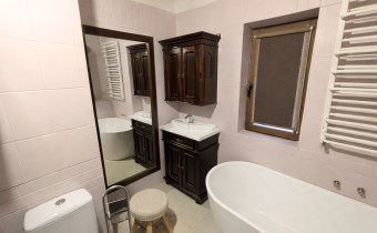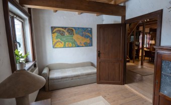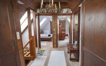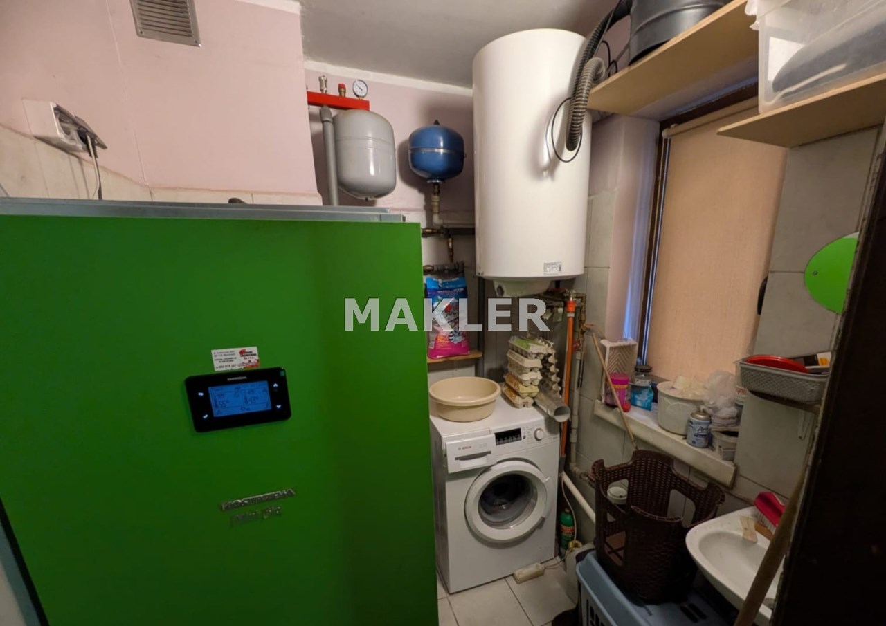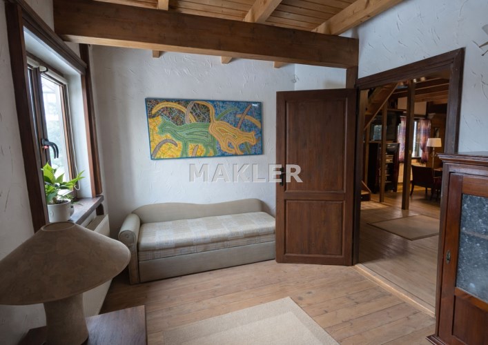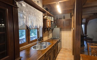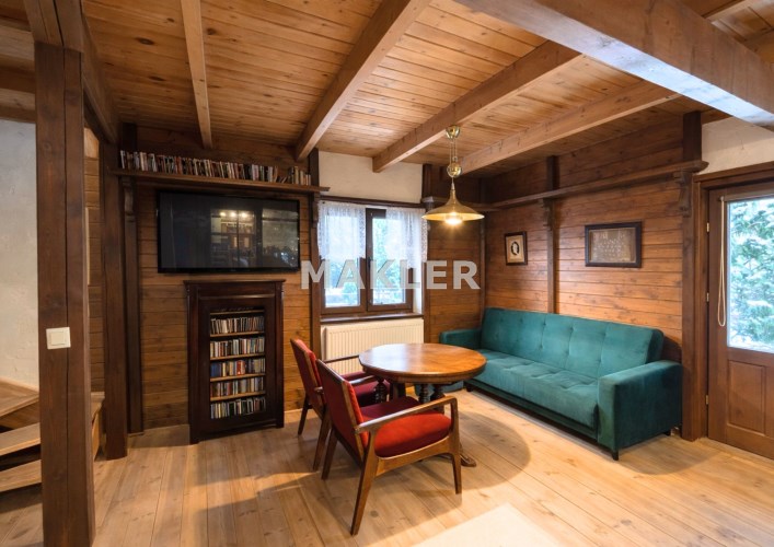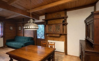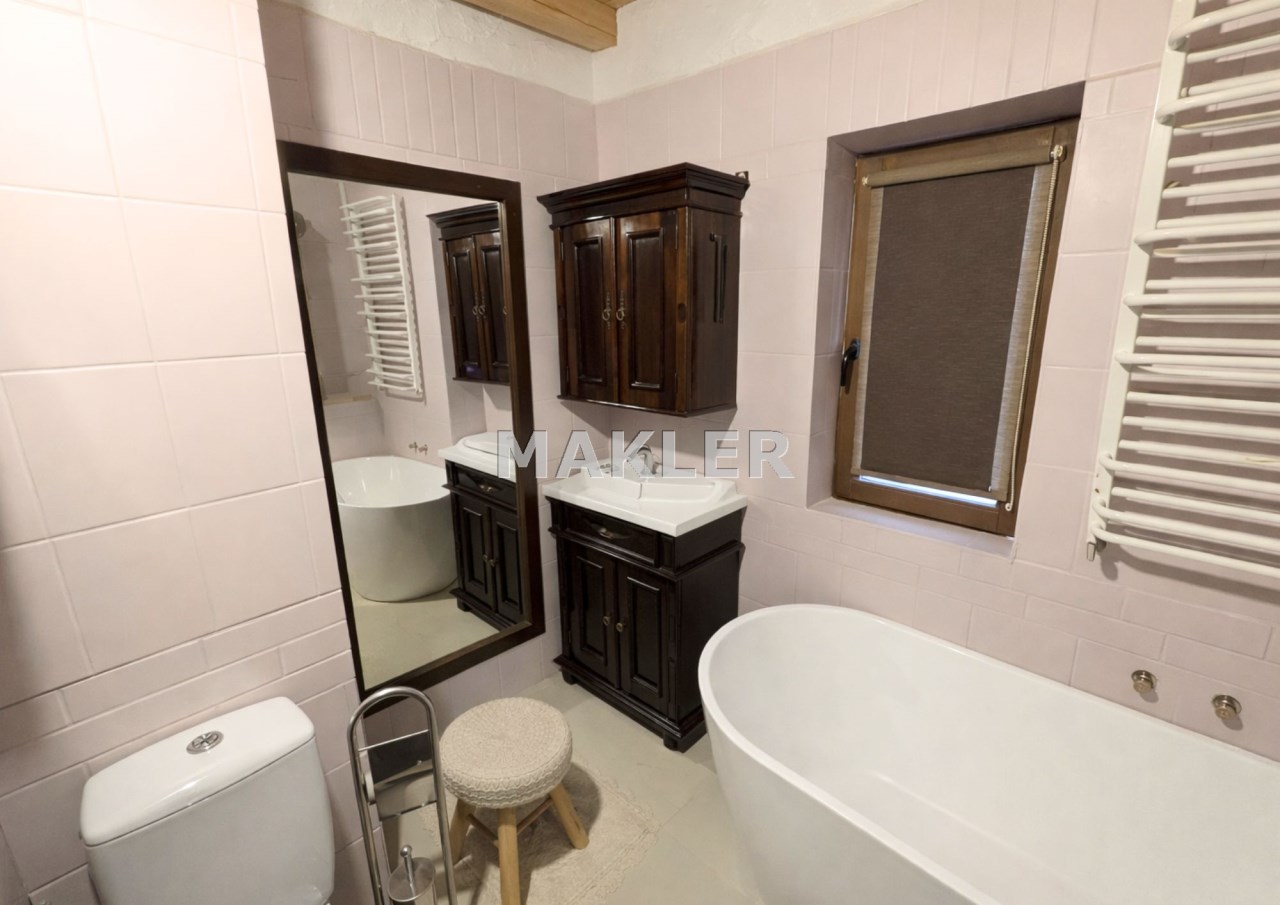 Na działce znajduje się również wolnostojący budynek garażowo-gospodarczy o powierzchni 39 m² z wiatą, ogrzewany z tego samego źródła co dom. Teren jest w pełni ogrodzony drewnianym ogrodzeniem i starannie zagospodarowany – liczne nasadzenia, drzewa, krzewy oraz kamienne ścieżki tworzą niepowtarzalny, klimatyczny charakter posesji.