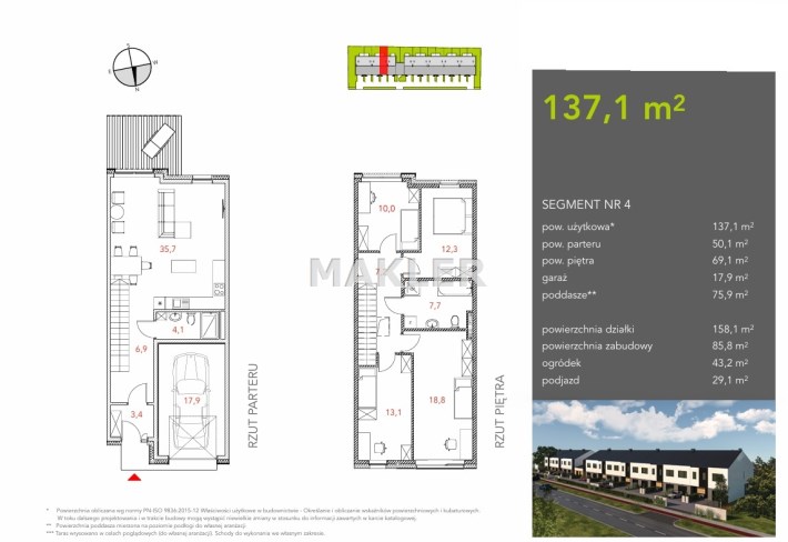 Przedstawiamy 5 pokojowy dom typu bliźniak o powierzchni 137,1 m2 na działce o powierzchni 158,1m2 usytuowanym w bliskości pięknych terenów zielonych.