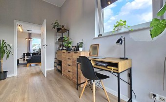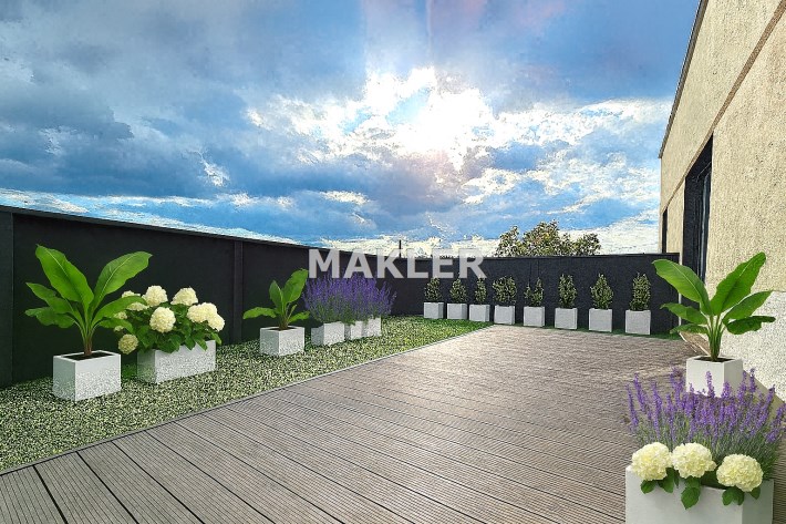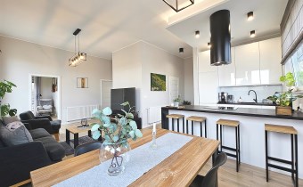 Ta komfortowa oaza ciszy i spokoju o powierzchni użytkowej 73,95 m2 składa się z salonu z aneksem kuchennym, z którego jest wyjście na ogromny taras (strona południowa) o powierzchni około 85 m2, dwóch sypialni, garderoby, spiżarki, przedpokoju i dużej, wygodnej łazienki.