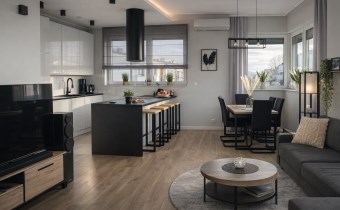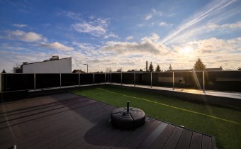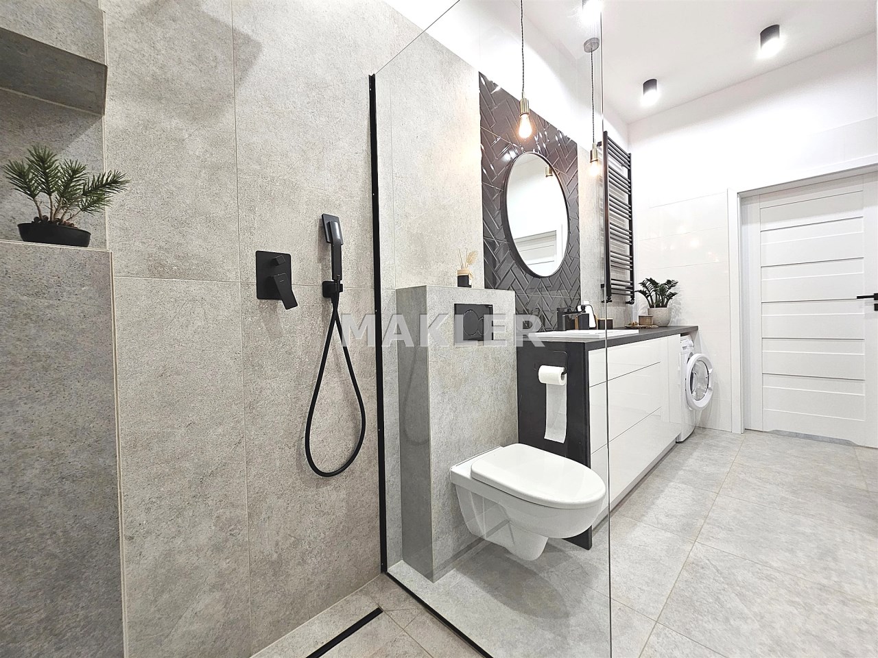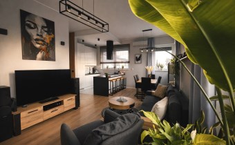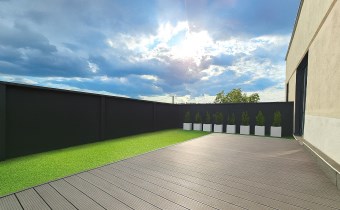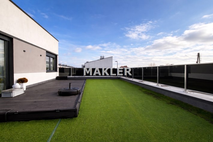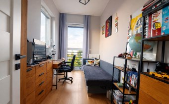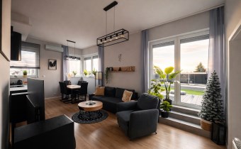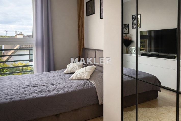 Ta komfortowa oaza ciszy i spokoju o powierzchni użytkowej 73,95 m2 składa się z salonu z aneksem kuchennym, z którego jest wyjście na ogromny taras (strona południowa) o powierzchni około 85 m2, dwóch sypialni, garderoby, spiżarki, przedpokoju i dużej, wygodnej łazienki.