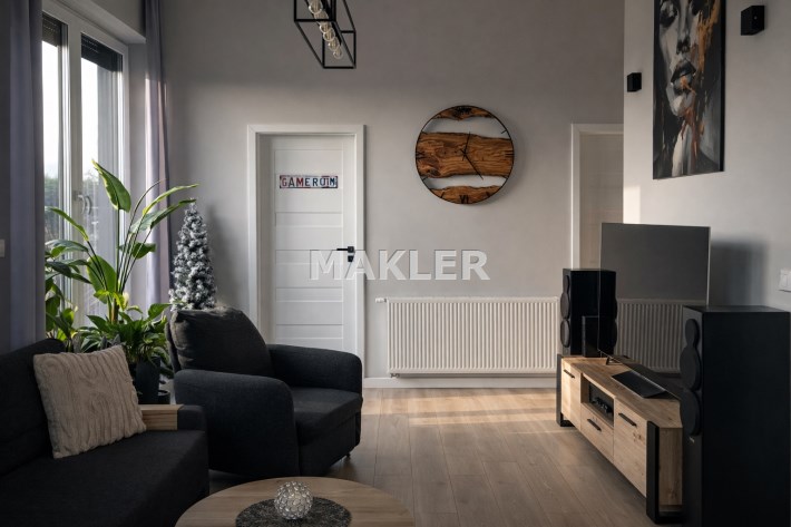 Przemyślany układ pomieszczeń ułatwia codzienne użytkowanie, a wystrój wnętrz uzewnętrznia dobry gust i smak Właścicieli.