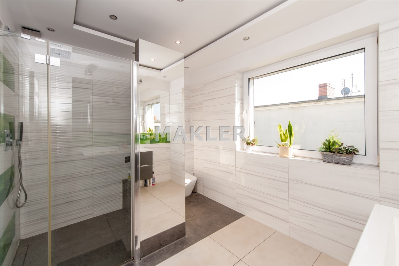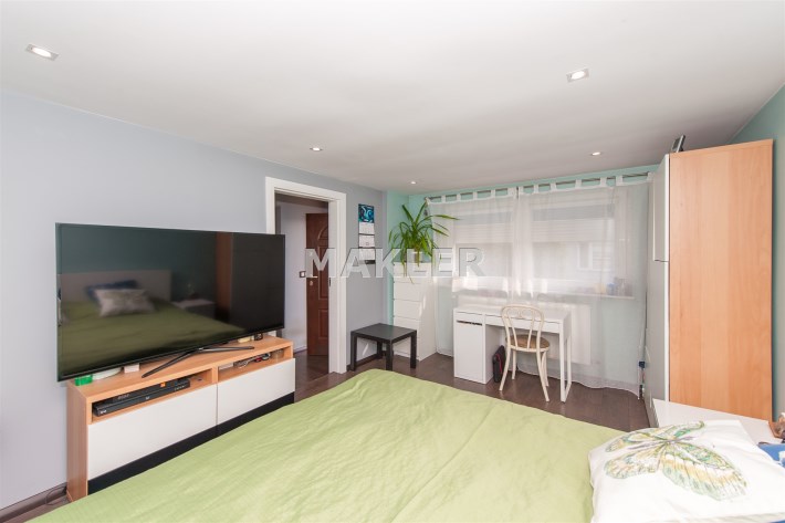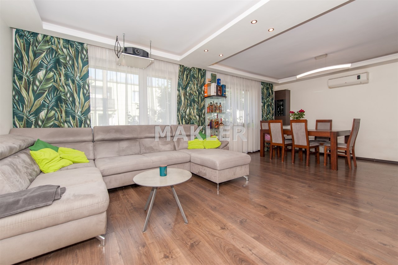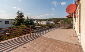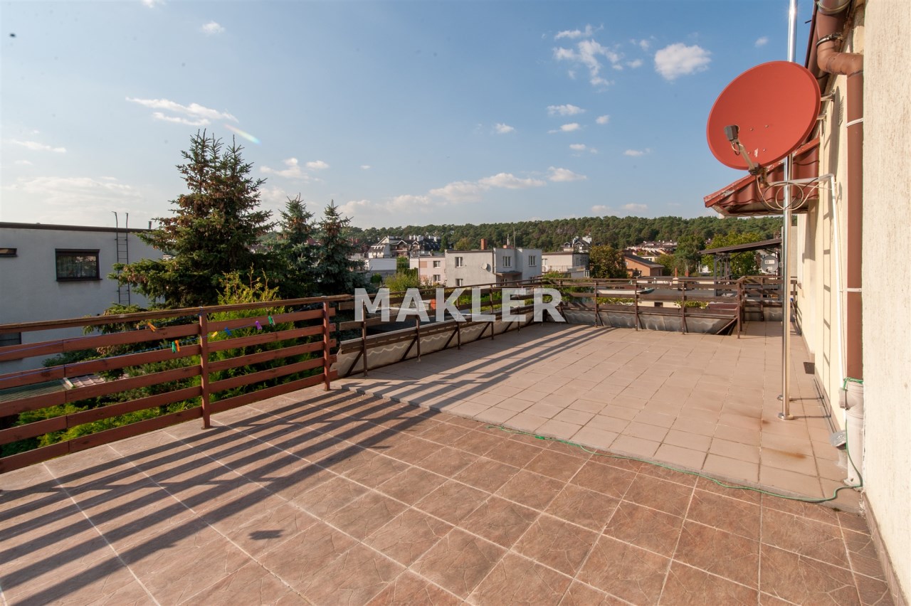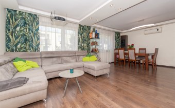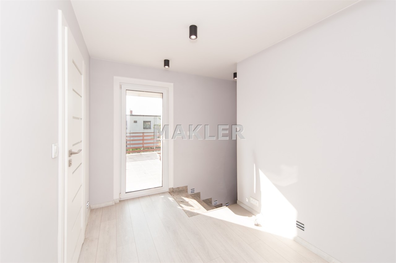 Dom w zabudowie blizniaczej z pięknie zagospodarowanym ogródkiem, wieloletnie obsadzenia.Dom o powierzchni 180m składa się z salonu, kuchni, sypialni,łazienki,szatni, natomiast góra dom to dwie sypialnie ,garderoba,łazienka, przestronny korytarz z wyjściem na duży taras.