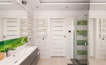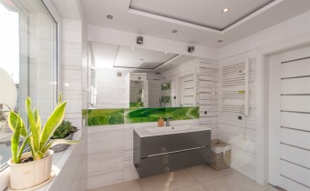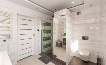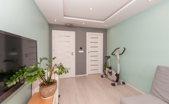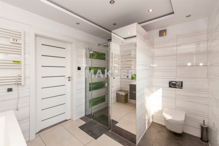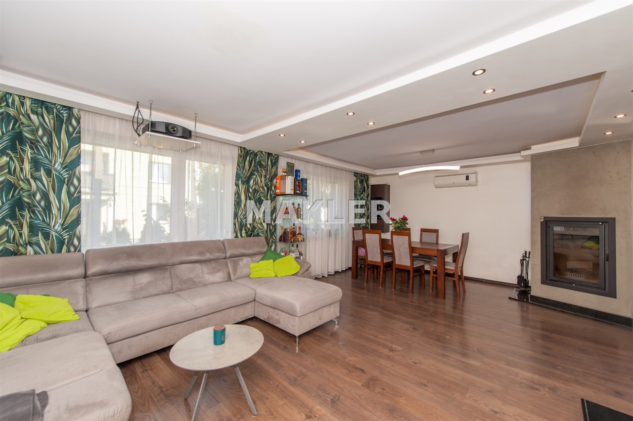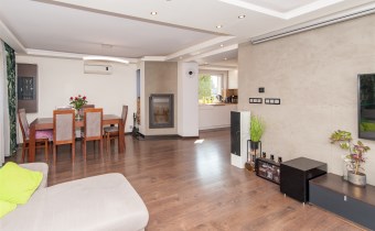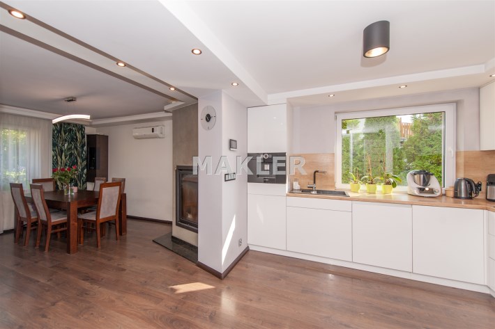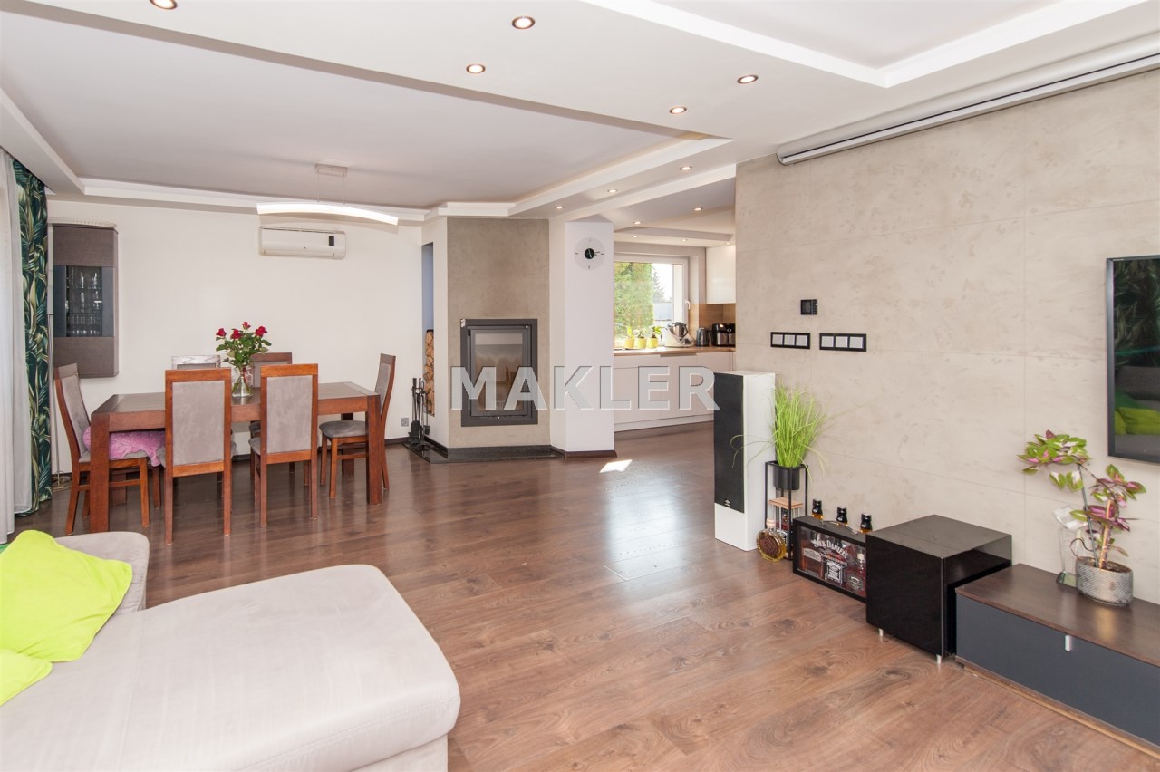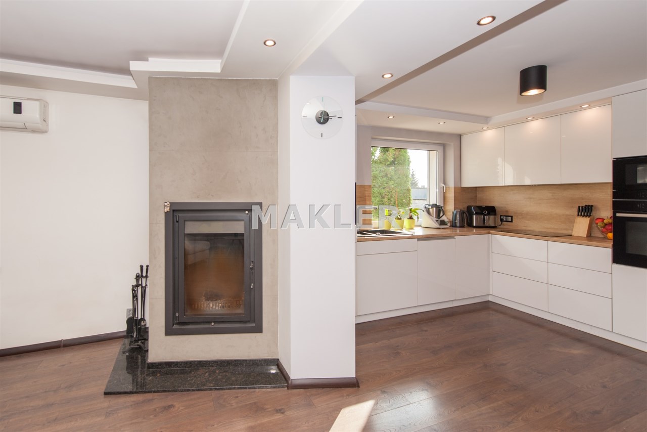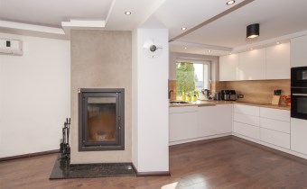 W salonie kominek z rozprowadzeniem, klimatyzacja.Wszędzie rolety zew.elektryczne.
