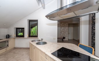 Całkowita powierzchnia użytkowa nieruchomości, uwzględniająca warsztat oraz piwnicę, wynosi około 340 m².