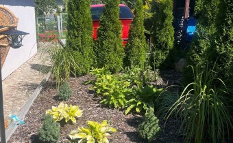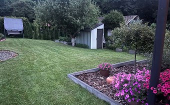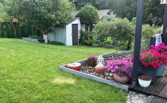 Działka posiada wieloletnie nasadzenia, wjazd na samochód oraz składzik na narzędzia.