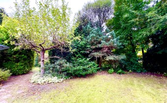 Zadbano również o to by ogród cieszył właścicieli przez cały rok - znajdziesz tu pokaźne i wysokie drzewa jak klon o charakterystycznym czerwonym odcieniu, jabłoń - bogato owocującą, sosnę oraz iglaki o rozłożystych koronach, tuje oraz krzewy owocowe, które pozwolą zebrać własne owoce.