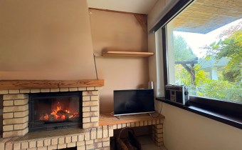 Funkcjonalne rozwiązania zastosowane podczas aranżacji wnętrza pozwalają na wygodne spędzanie czasu zarówno latem jak i w chłodniejsze pory roku np. jesienią.