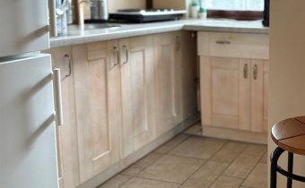 Kuchnia z zabudową meblową gdzie pomieścisz naczynia do gotowania posiłków. W łazience prysznic - ciepła woda podgrzewana bojlerem.