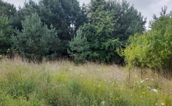 Działka o kształcie prostokąta,z licznymi samosiejkami.