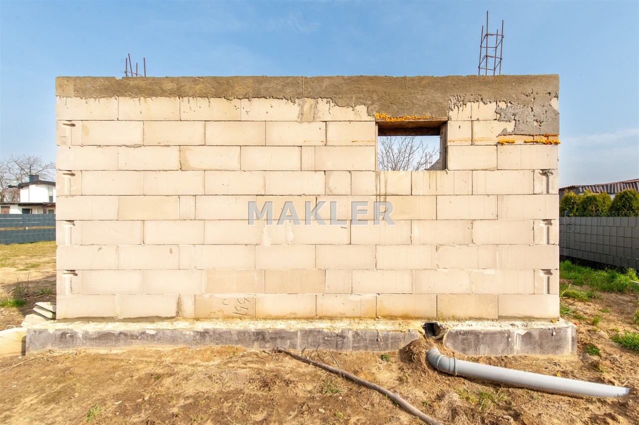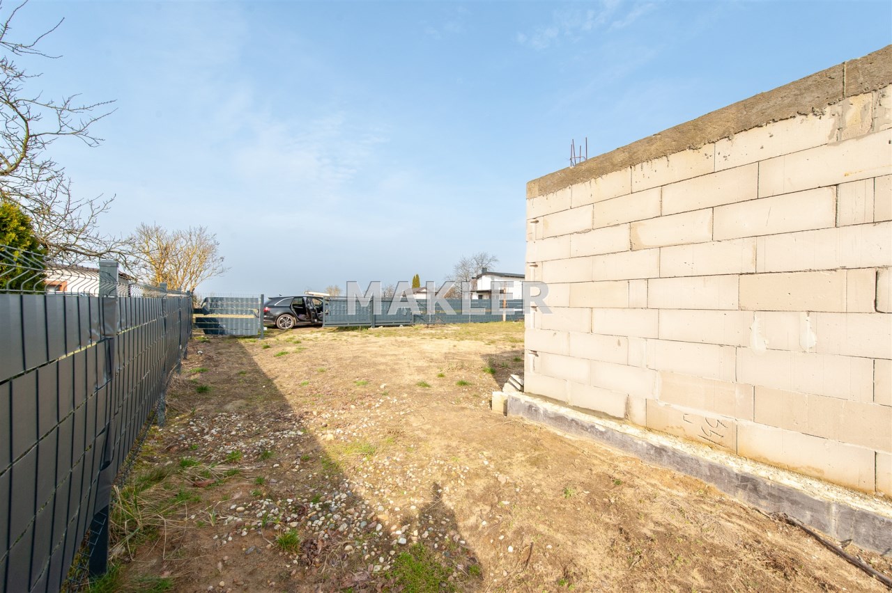 Działka jest ogrodzona, z nową bramąpełną automatyką. Na terenie znajduje się domek w stanie surowym otwartym. Przewidziana powierzchnia to 35 m2 (istnieje możliwość dobudowy piętra).