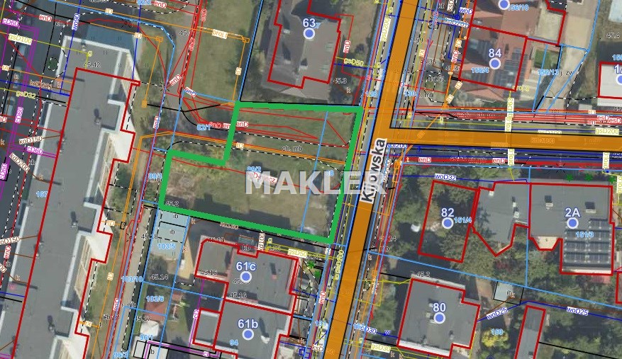 Teren będący przedmiotem oferty zaznaczono na mapie kolorem zielonym. Skrzyżowanie ulic Kijowskiej z Boczną.