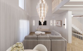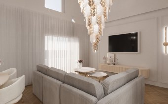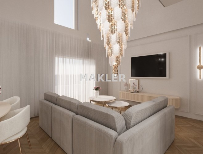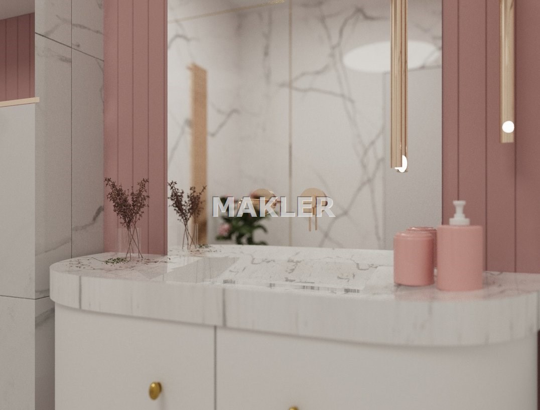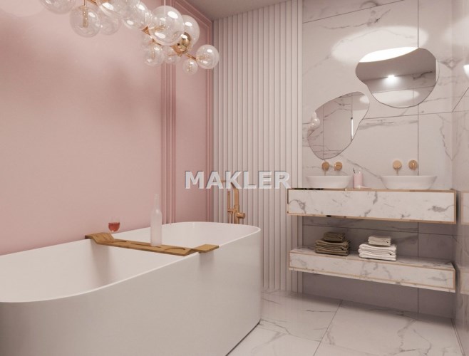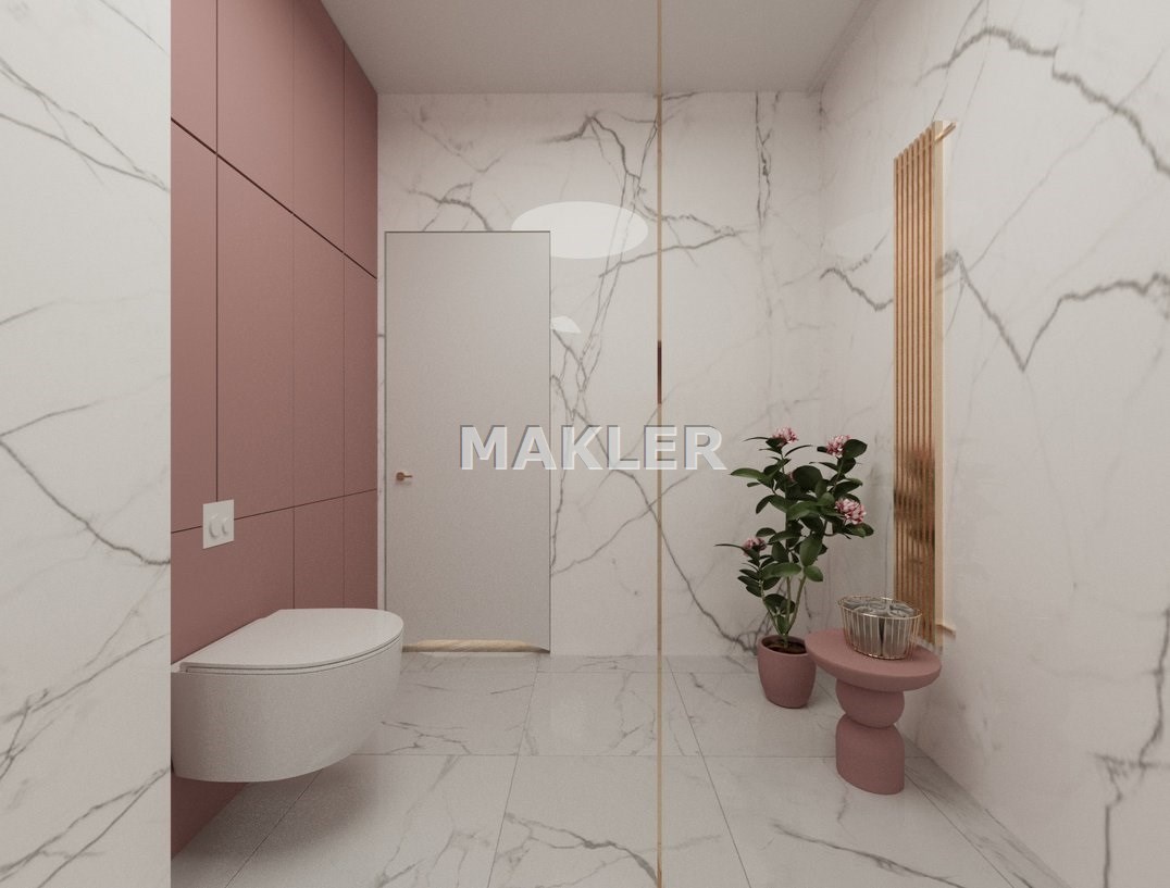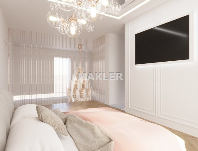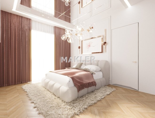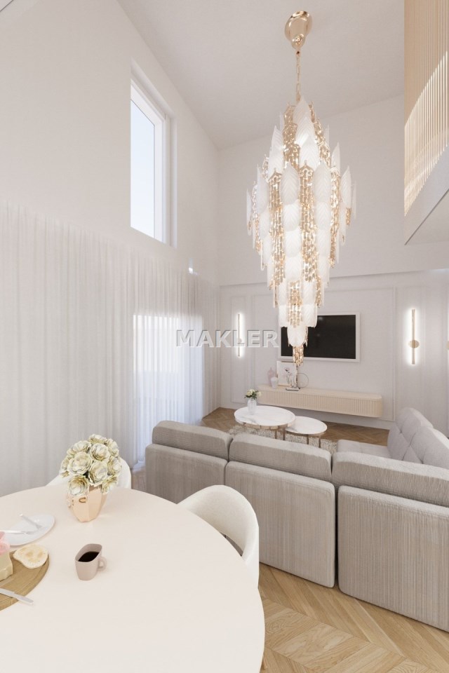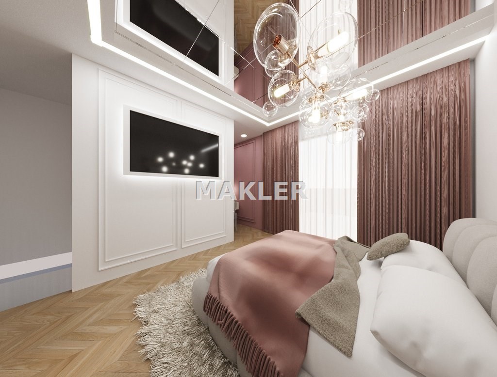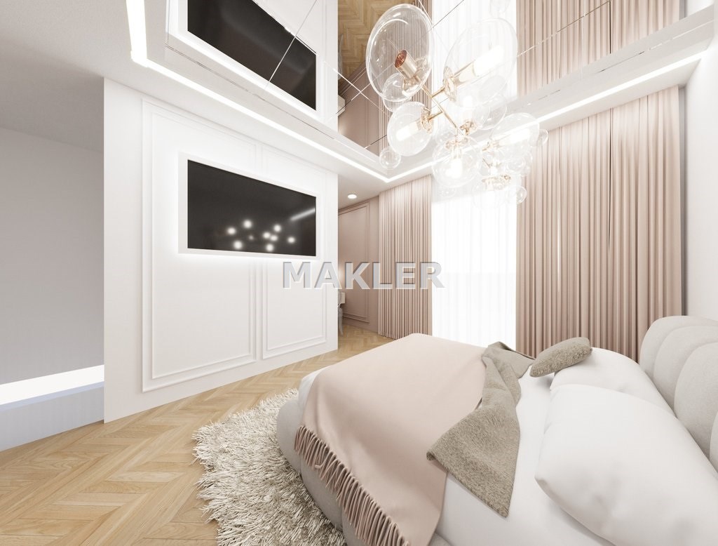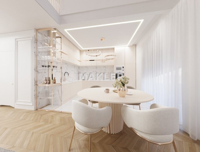 Załączone w ogłoszeniu zdjęcia mają charakter wizualizacji i przedstawiają jedynie propozycję aranżacji wnętrza przygotowaną przez znaną, prestiżową projektantkę. Mieszkanie sprzedawane jest w stanie deweloperskim.