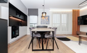 W apartamencie są: 3 sypialnie oraz salon z aneksem kuchennym.