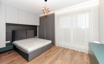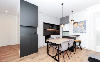 W apartamencie są: 3 sypialnie oraz salon z aneksem kuchennym.