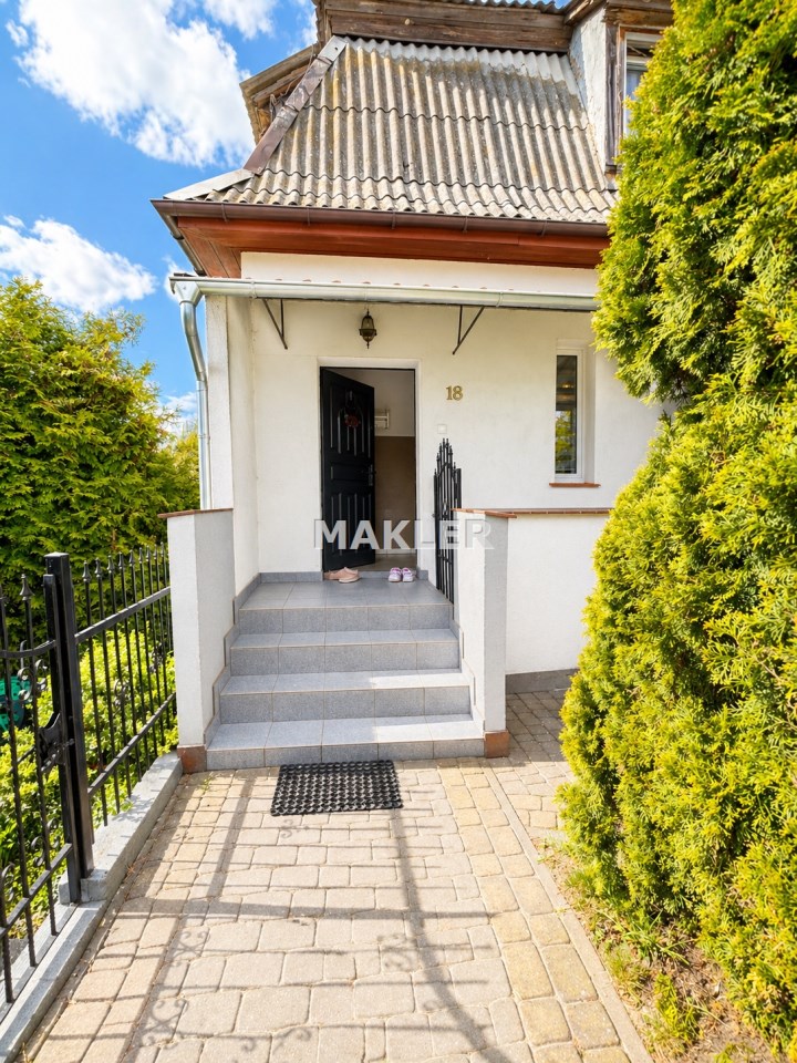 Na terenie ogródka znajduje się drewniana wiata oraz grill, co tworzy świetne warunki do spotkań rodzinnych i wypoczynku.