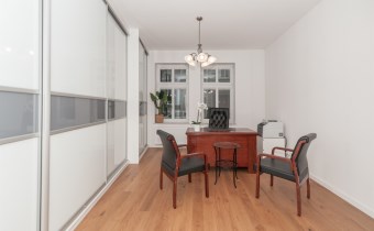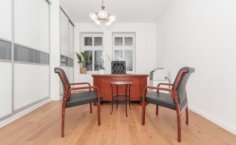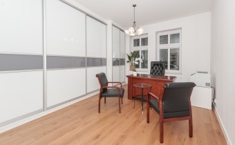 Wnętrze mieszkania wyróżnia się wysoką jakością wykończenia – w pokoju z aneksem znajduje się deska barlinecka, a w łazience i przedpokoju gresowe płytki. W pokoju znajduje się przestronna szafa w zabudowie firmy Komandor. Okna wychodzą na ulicę Pomorską i są zabezpieczone roletami antywłamaniowymi, a parapety wykonane są z konglomeratu.